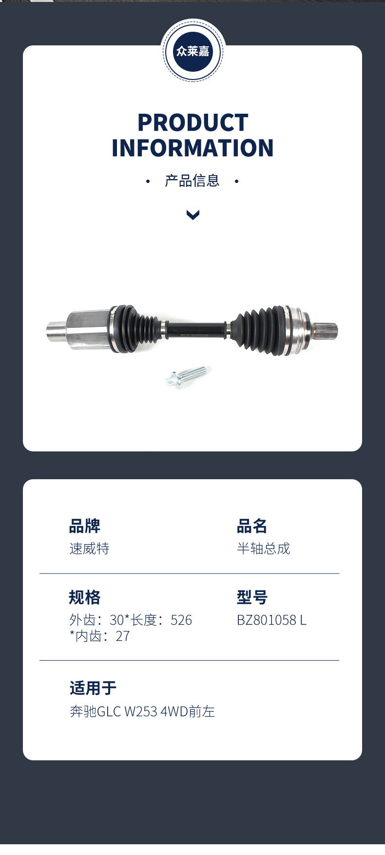 Шариковая клетка привода, новая, защищенная от ржавчины, автомобильная полуось, подходящая для Mercedes-Benz Glc/W253/4Wd передней левой полуоси