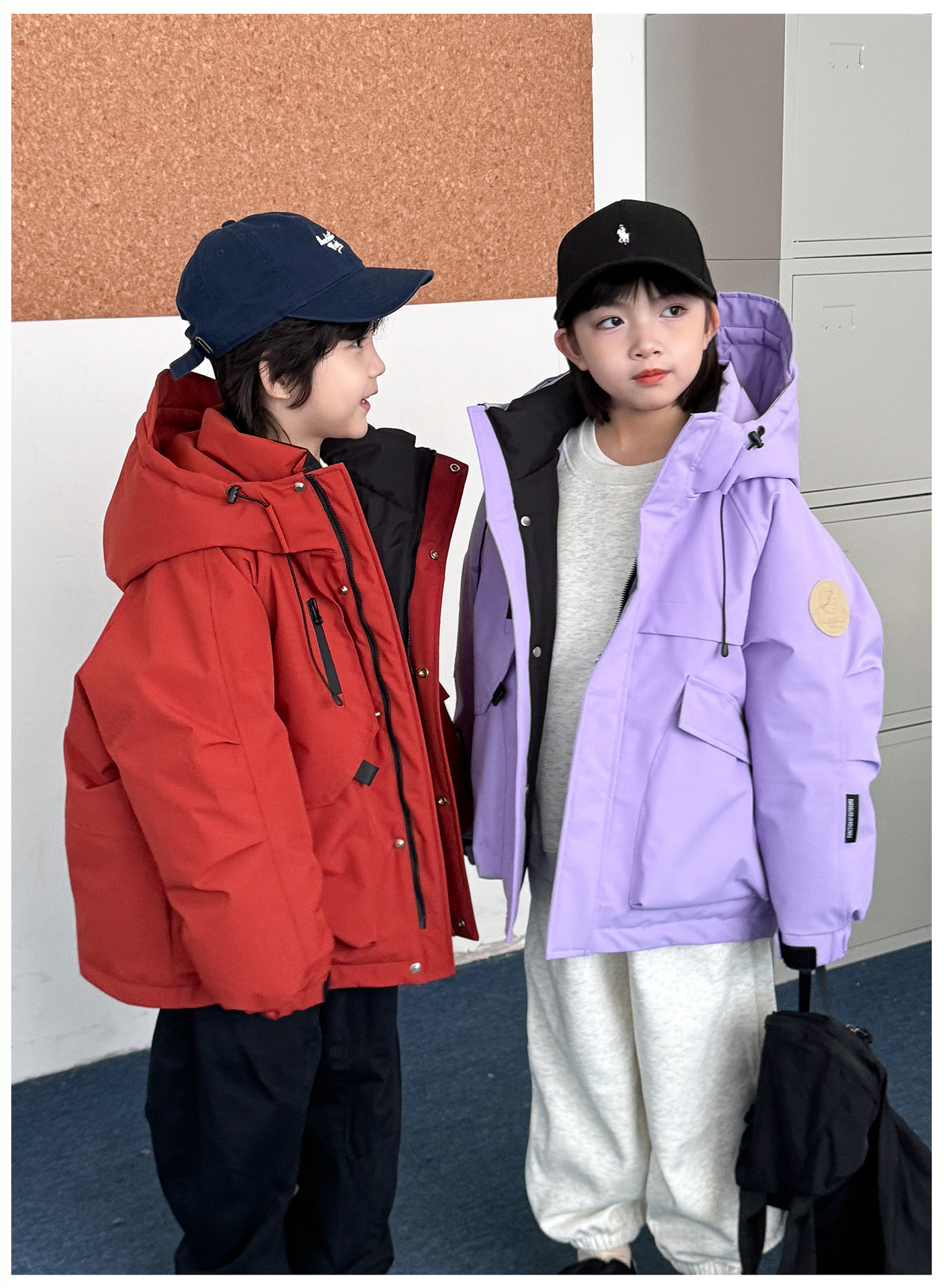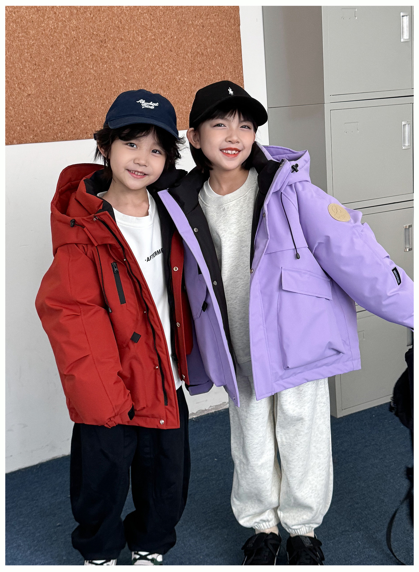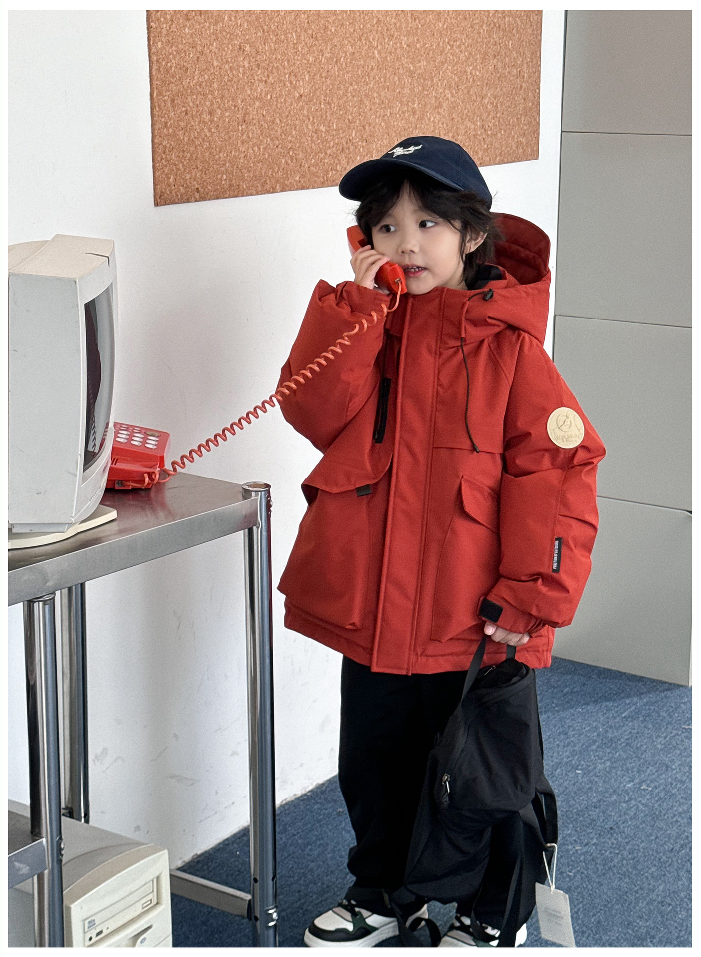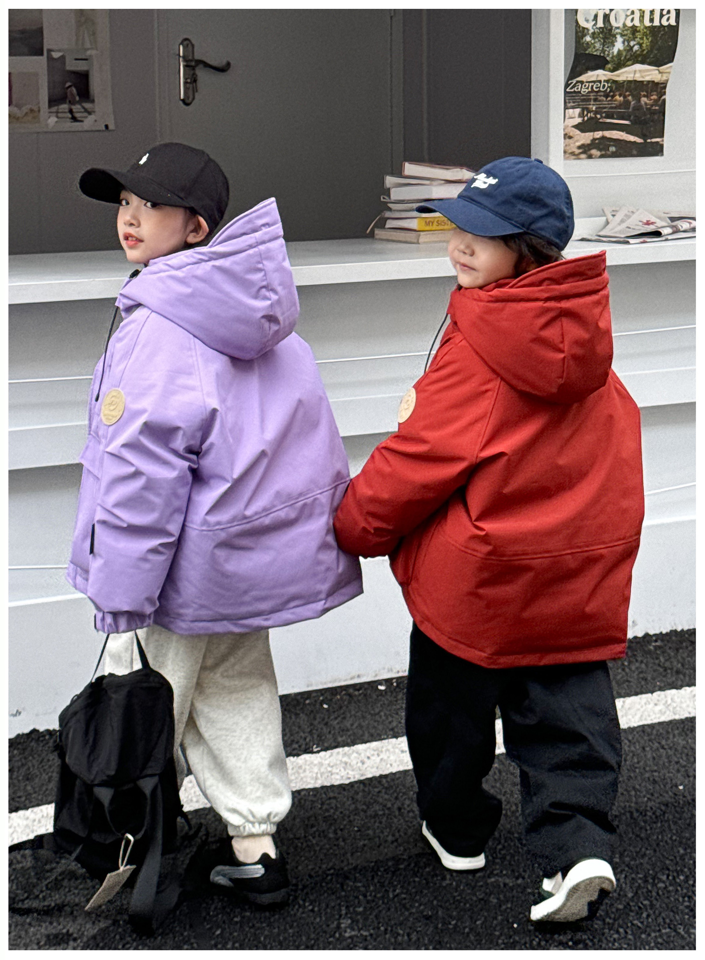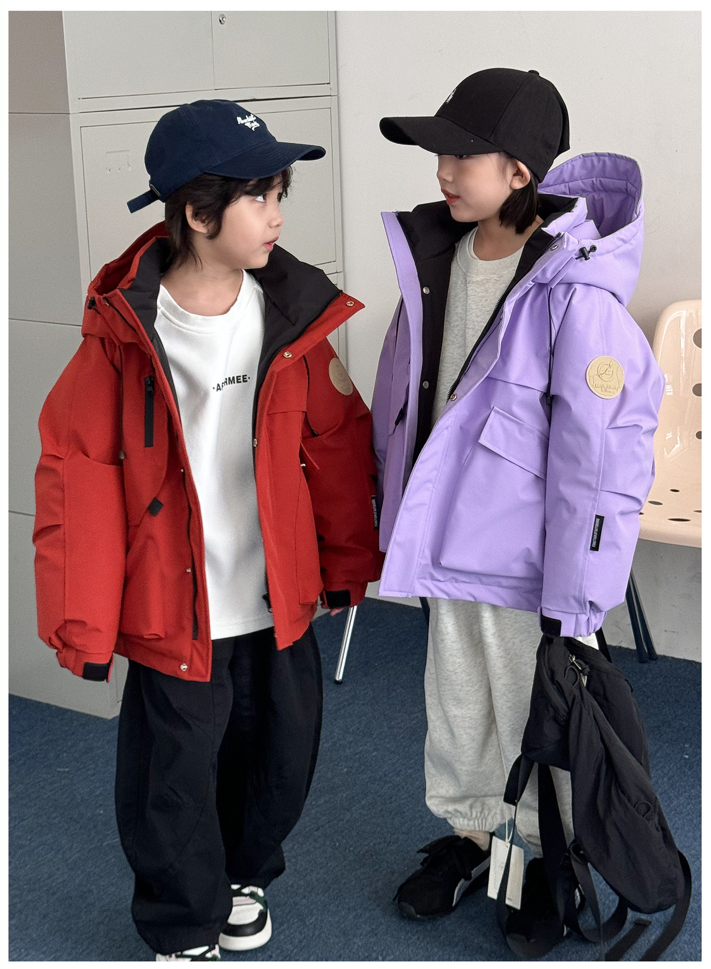 Детская рабочая куртка с утеплителем, корейский стиль, новая, для мальчиков и девочек, утепленная, водоотталкивающая, с капюшоном