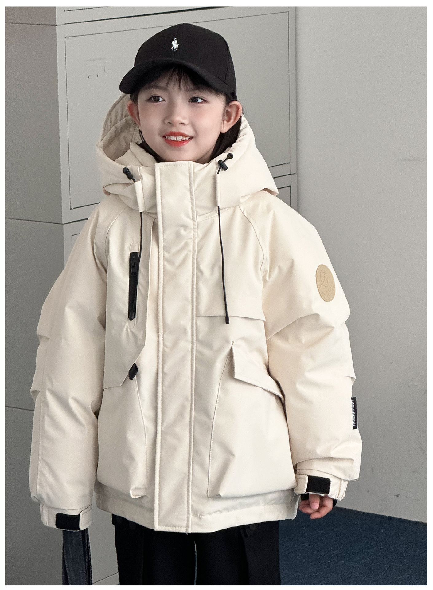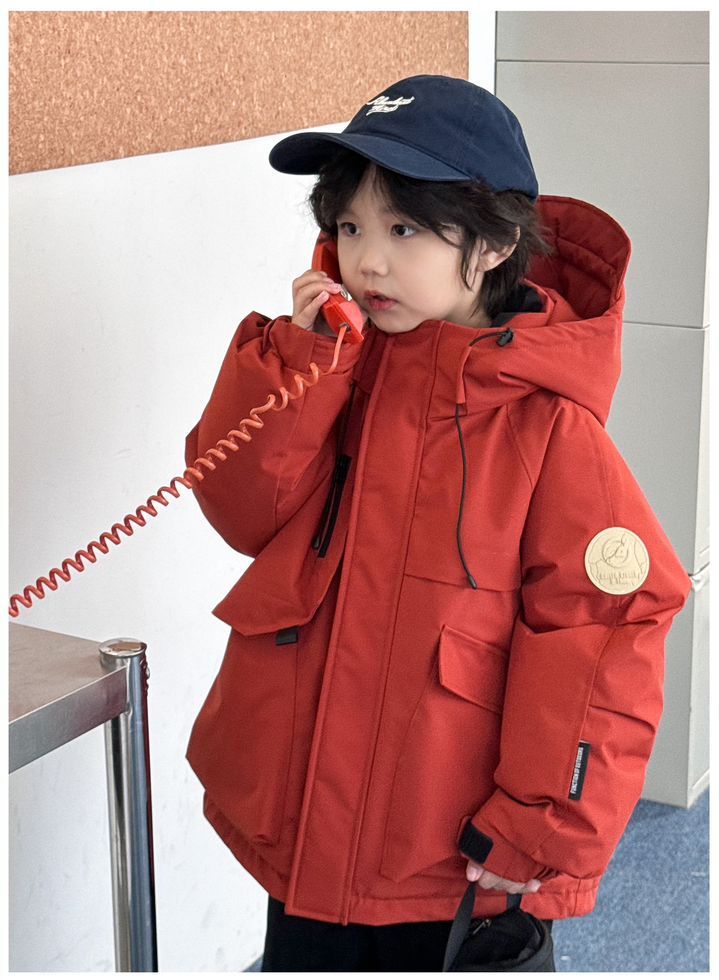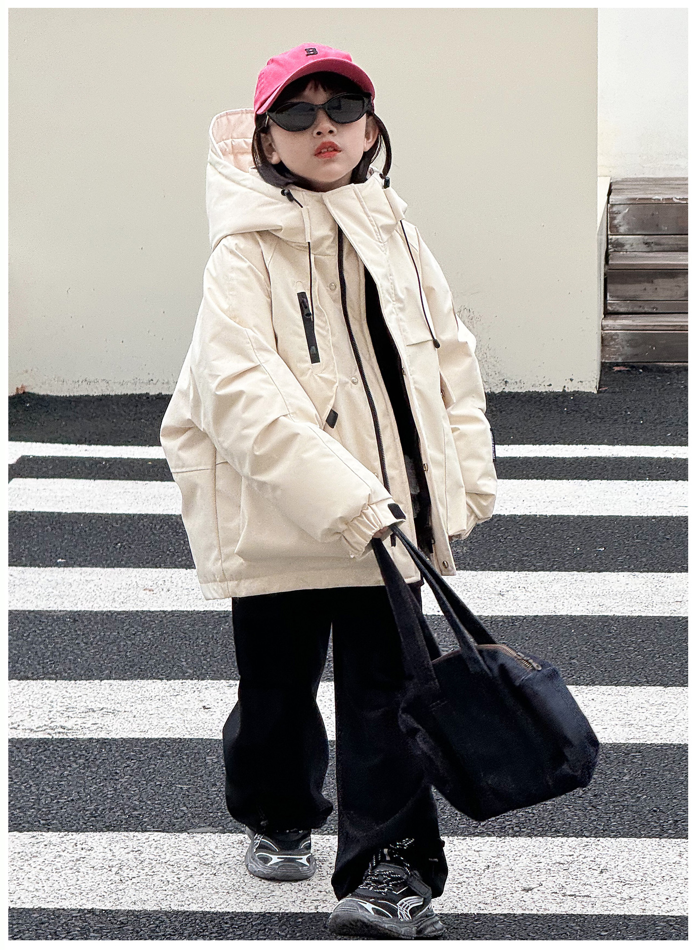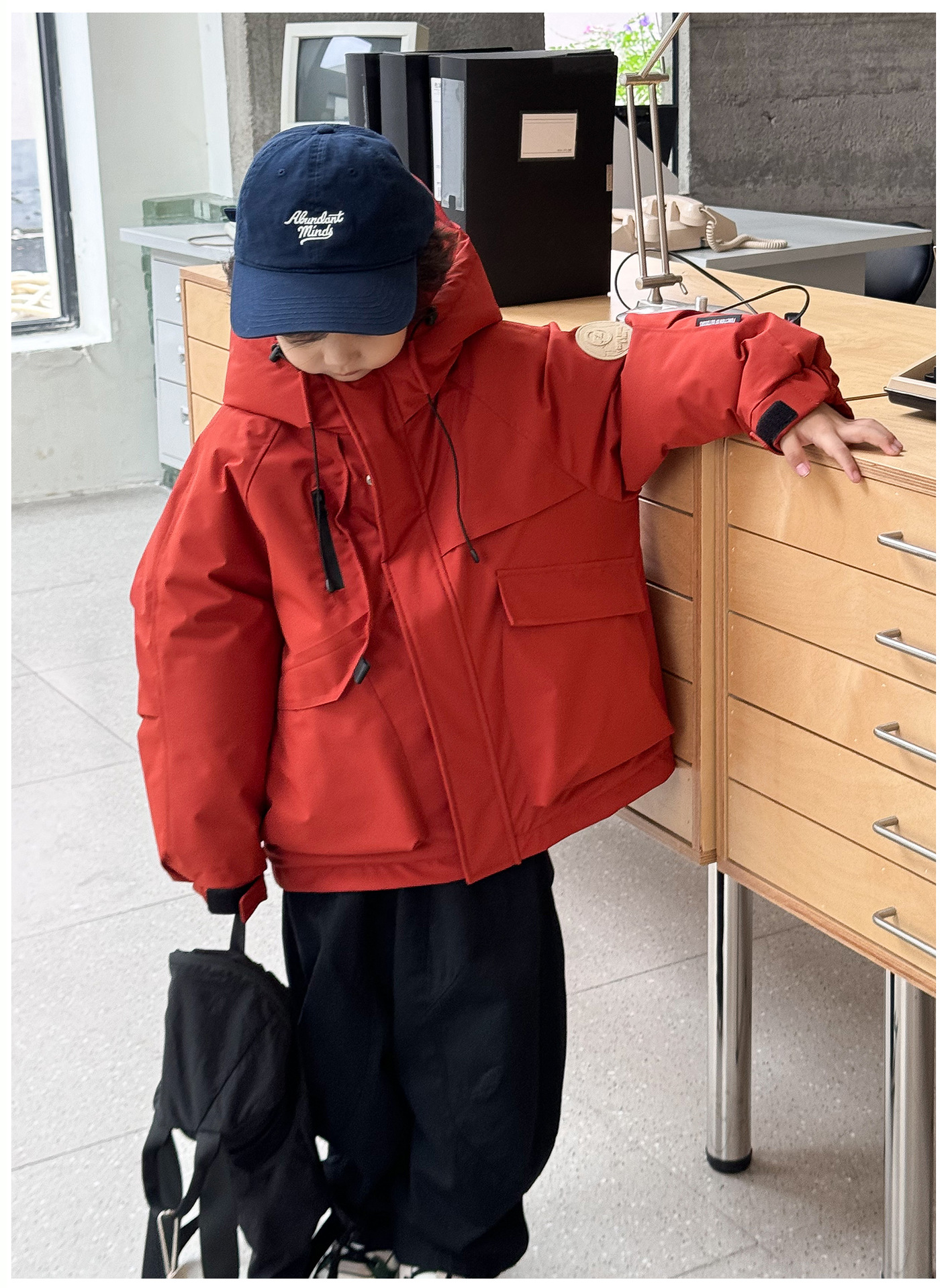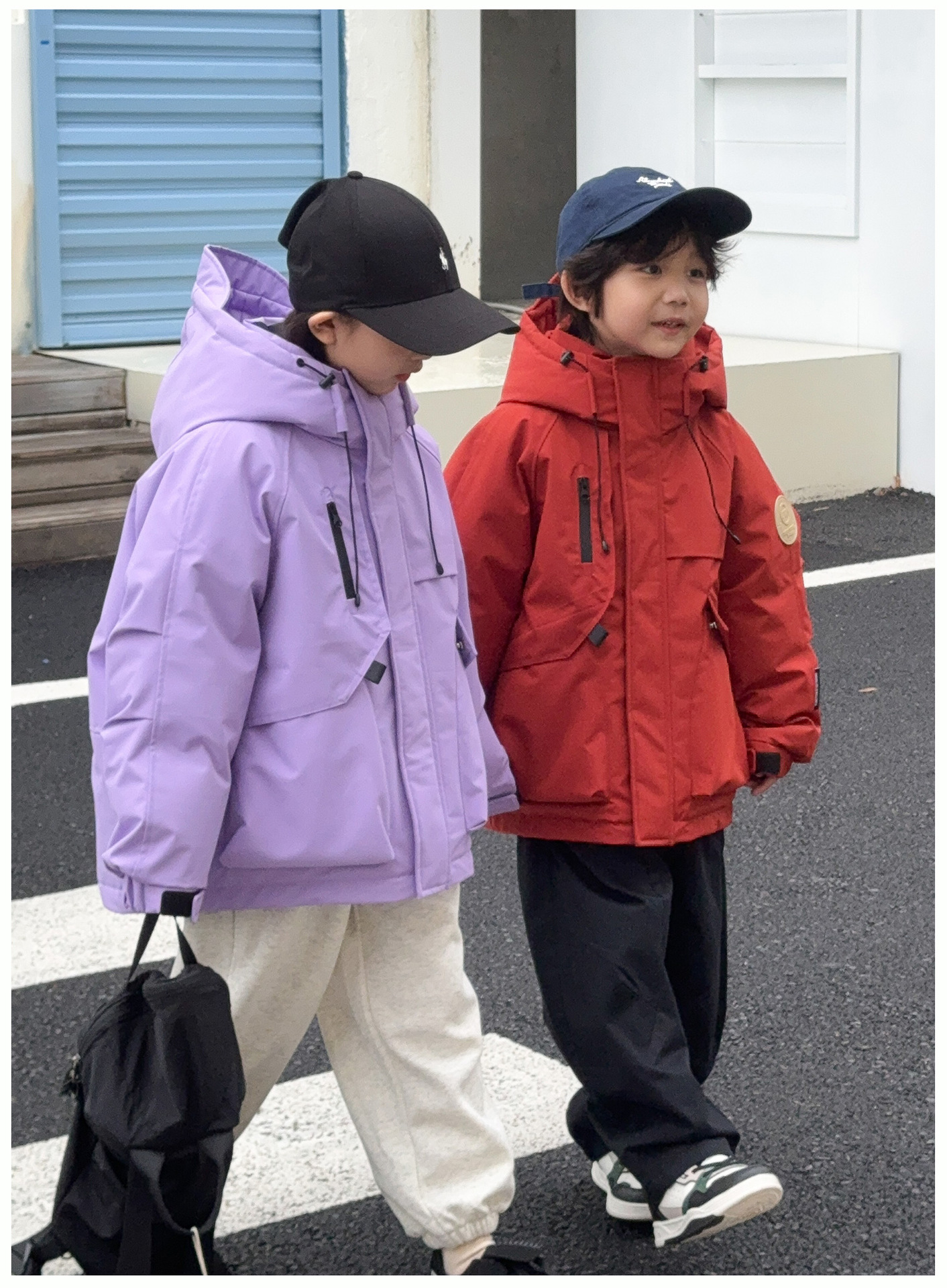Детская рабочая куртка с утеплителем, корейский стиль, новая, для мальчиков и девочек, утепленная, водоотталкивающая, с капюшоном