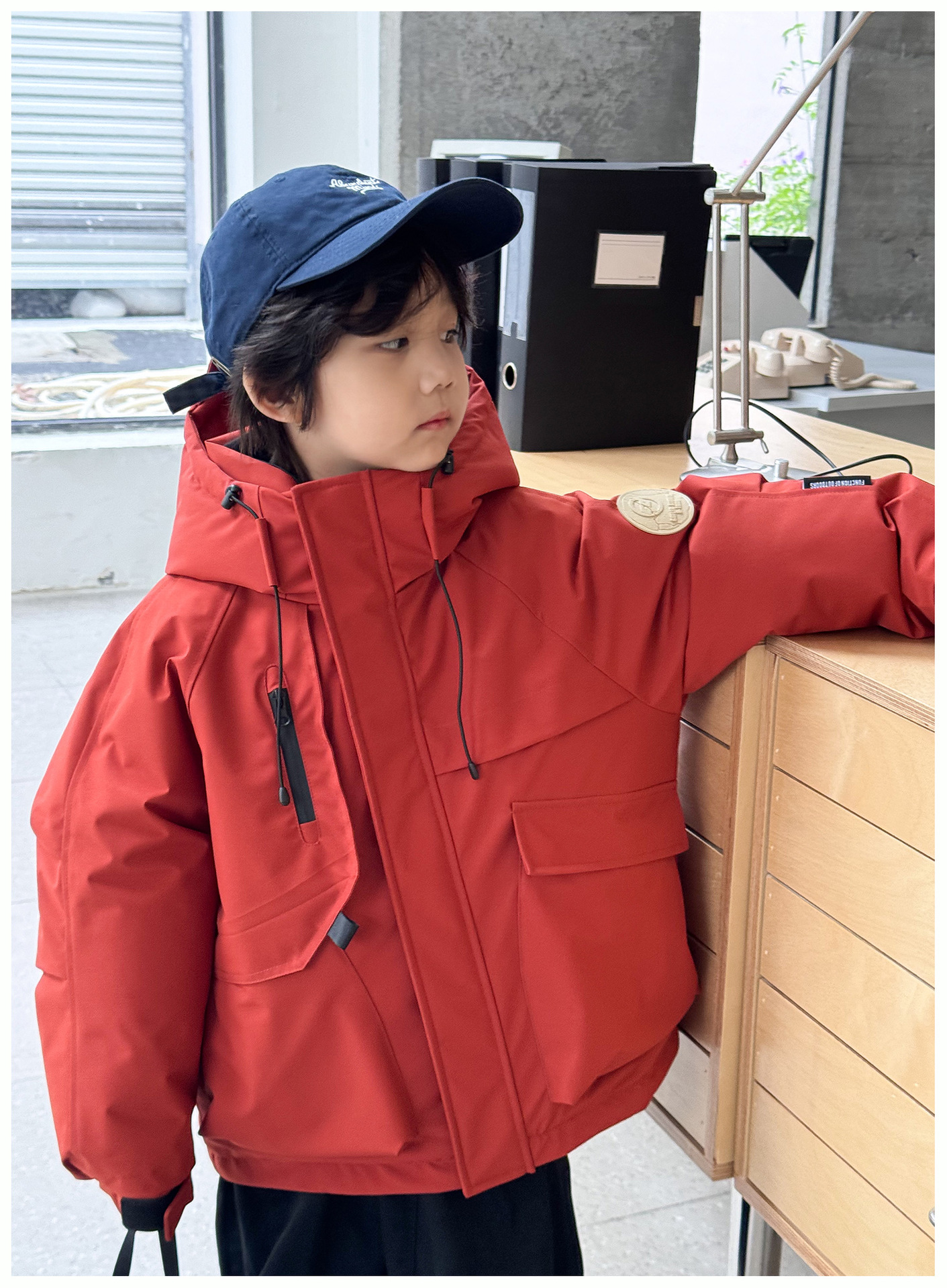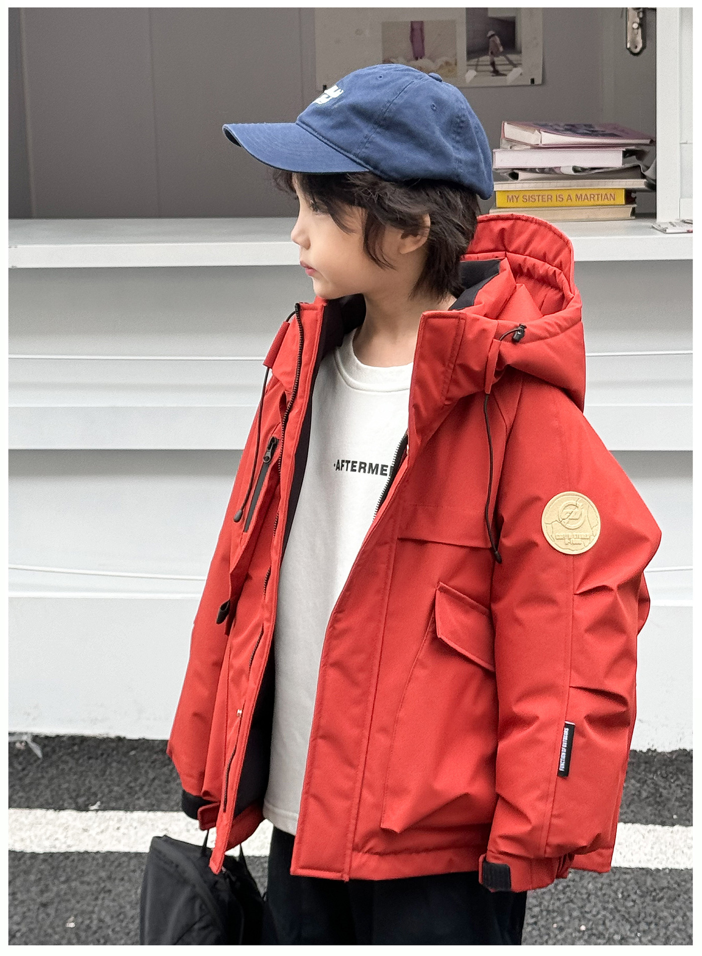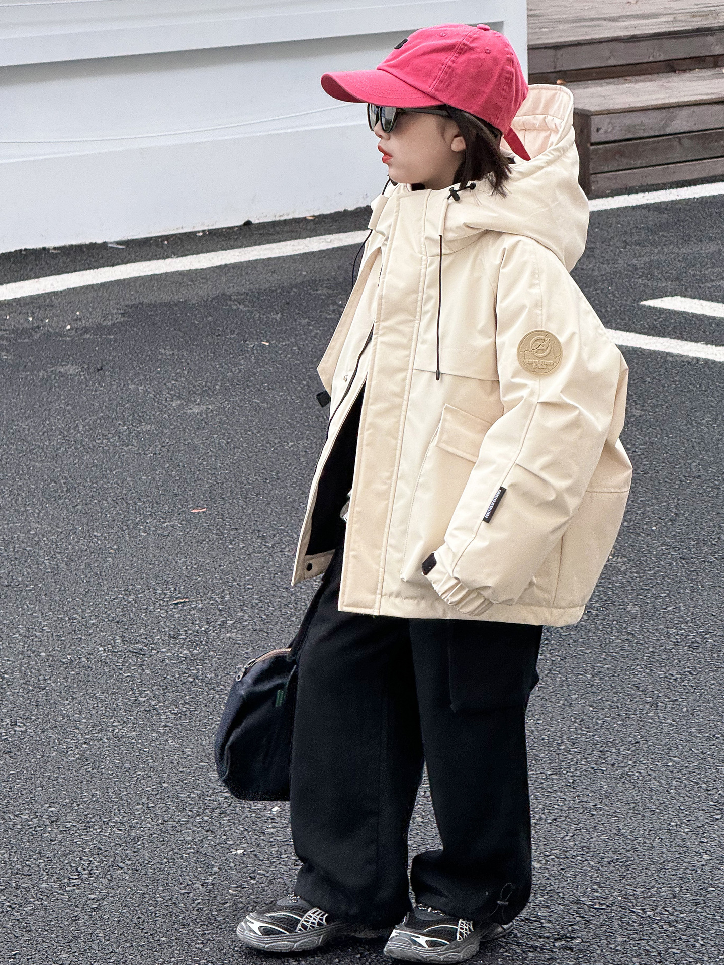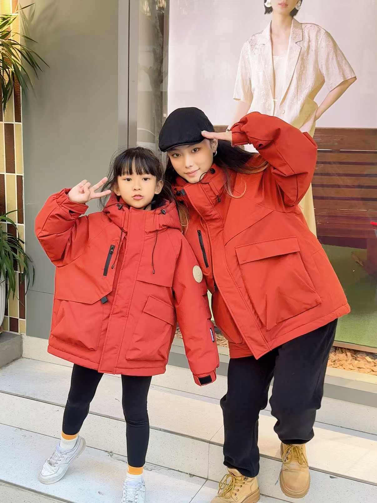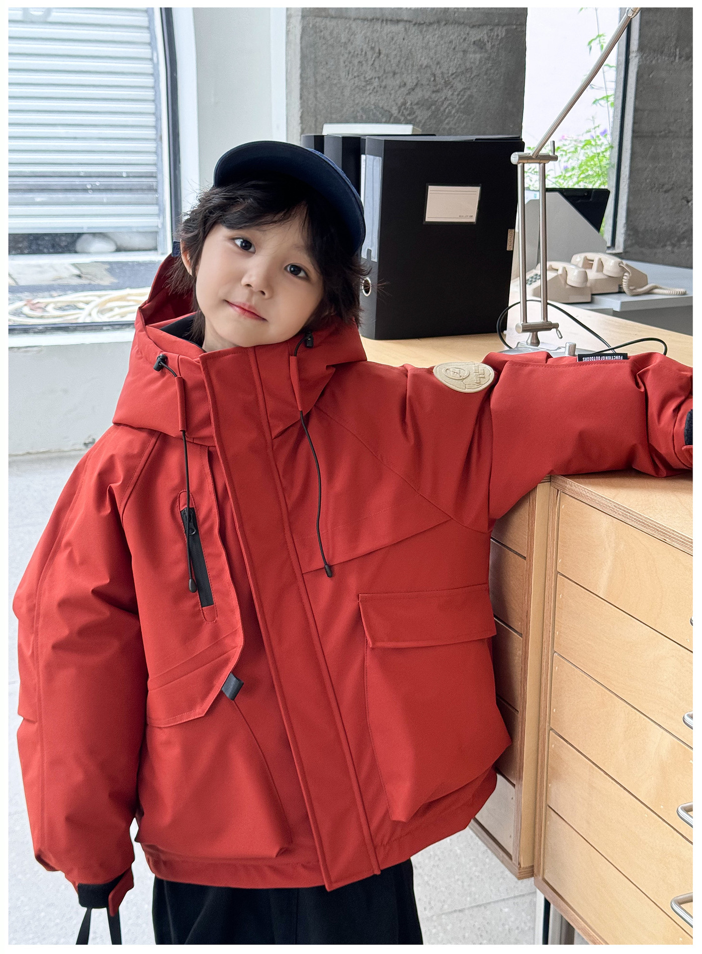 Детская рабочая куртка с утеплителем, корейский стиль, новая, для мальчиков и девочек, утепленная, водоотталкивающая, с капюшоном