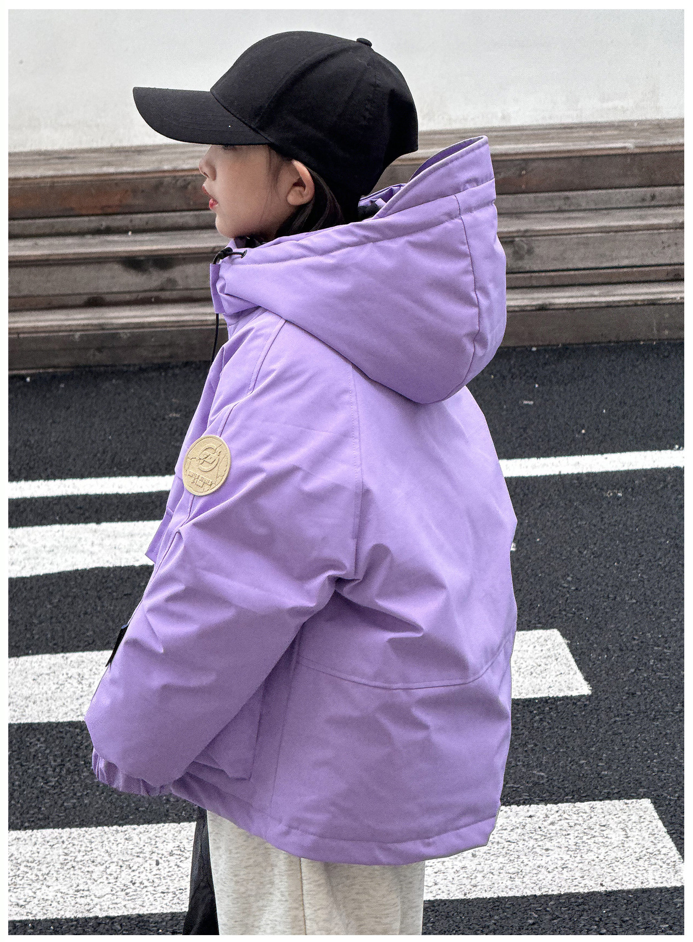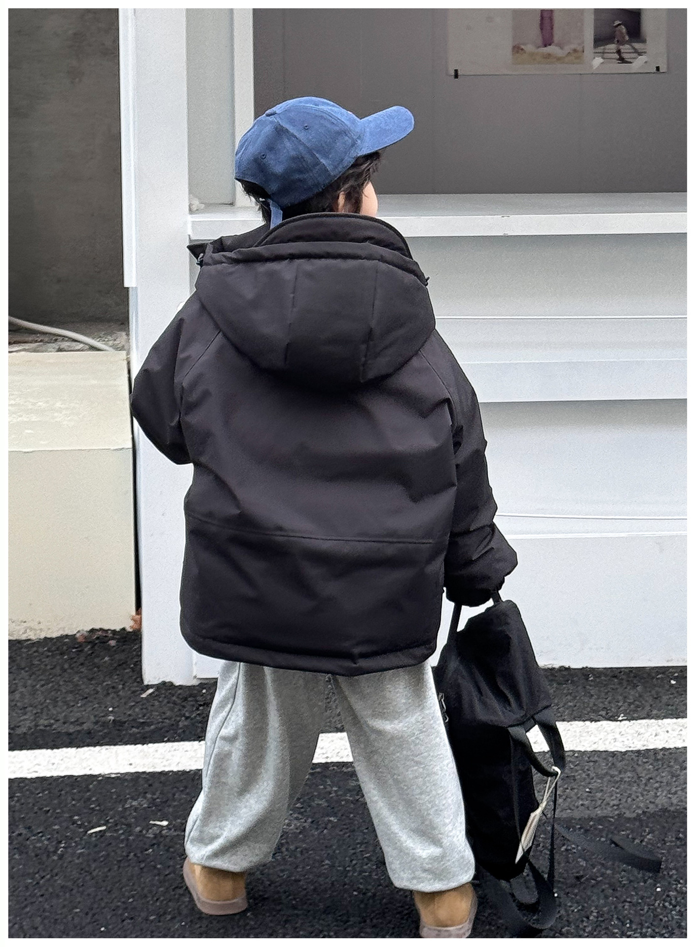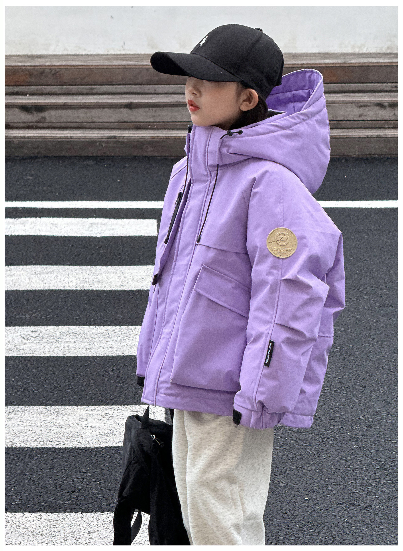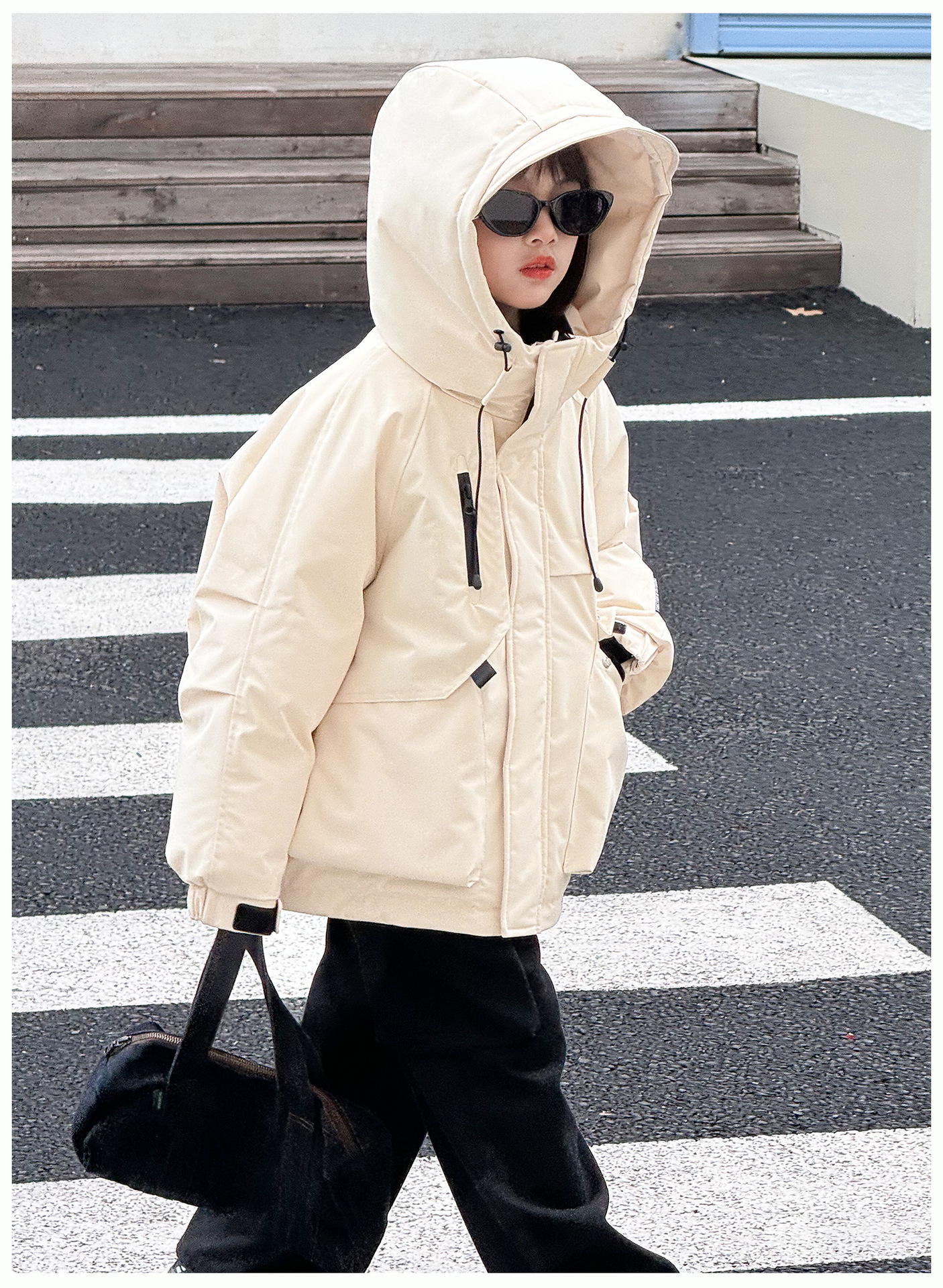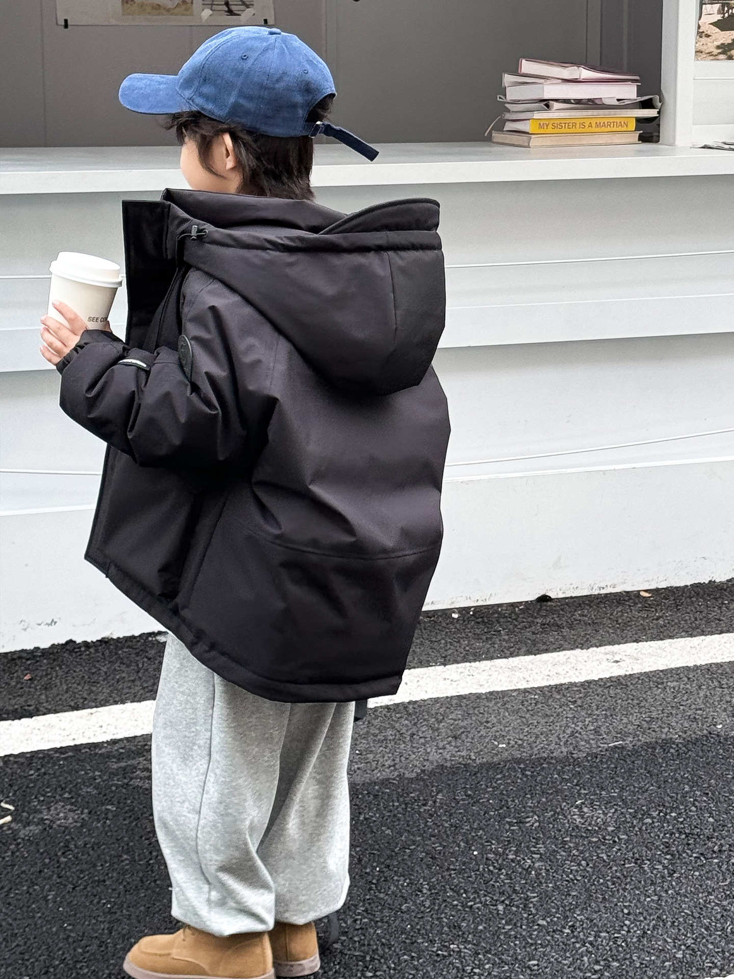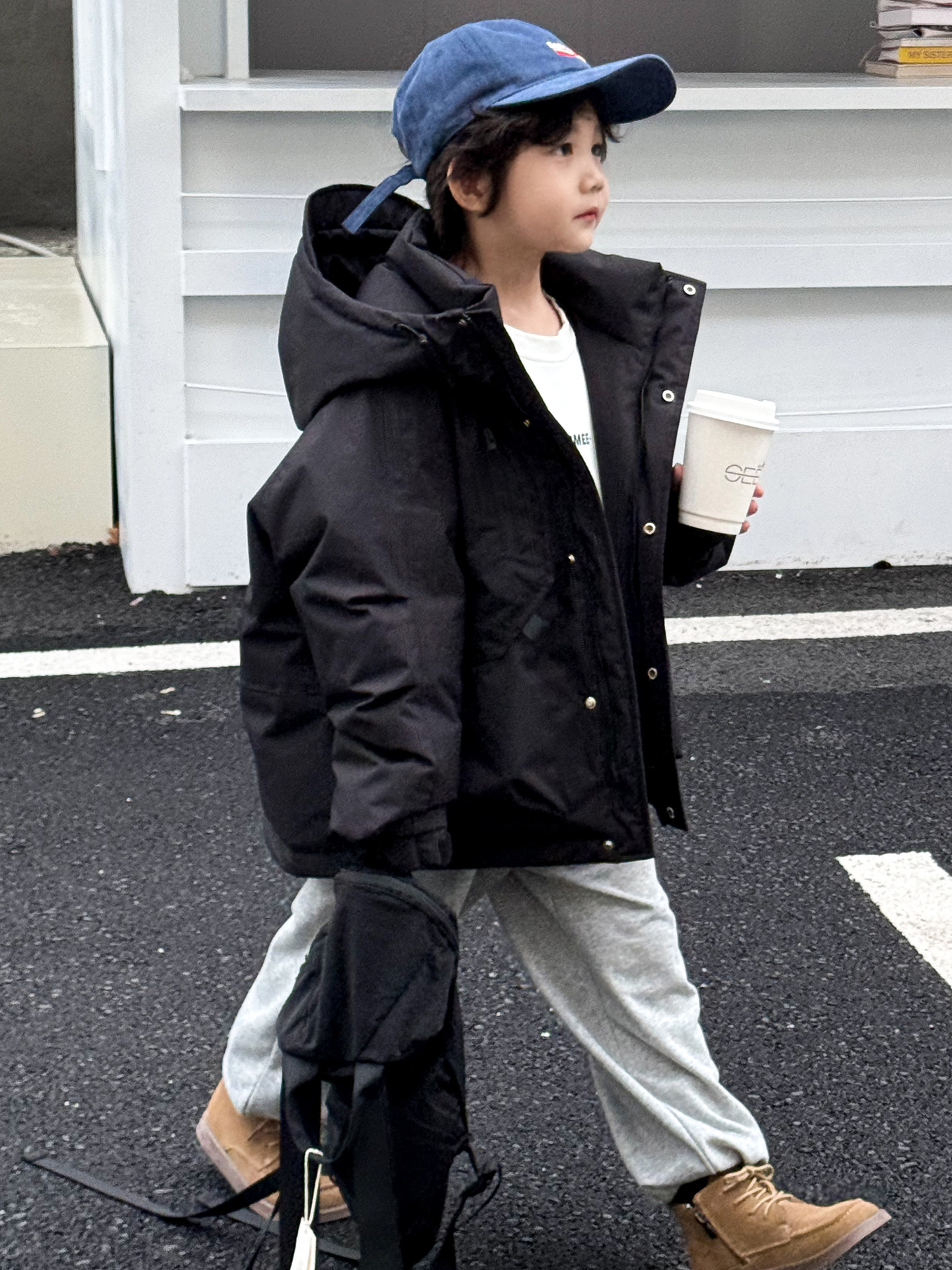 Детская рабочая куртка с утеплителем, корейский стиль, новая, для мальчиков и девочек, утепленная, водоотталкивающая, с капюшоном