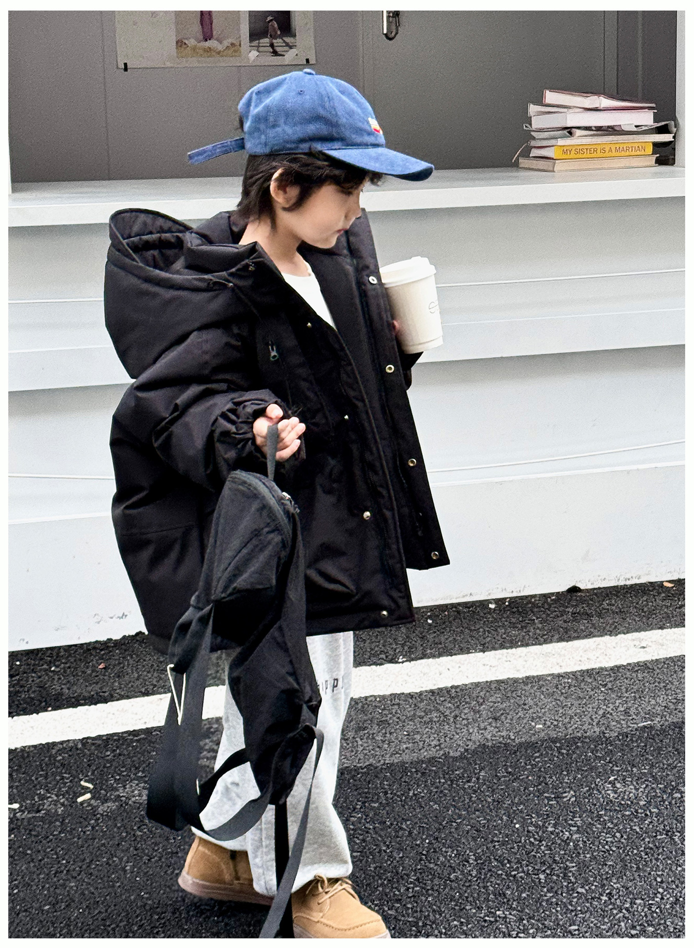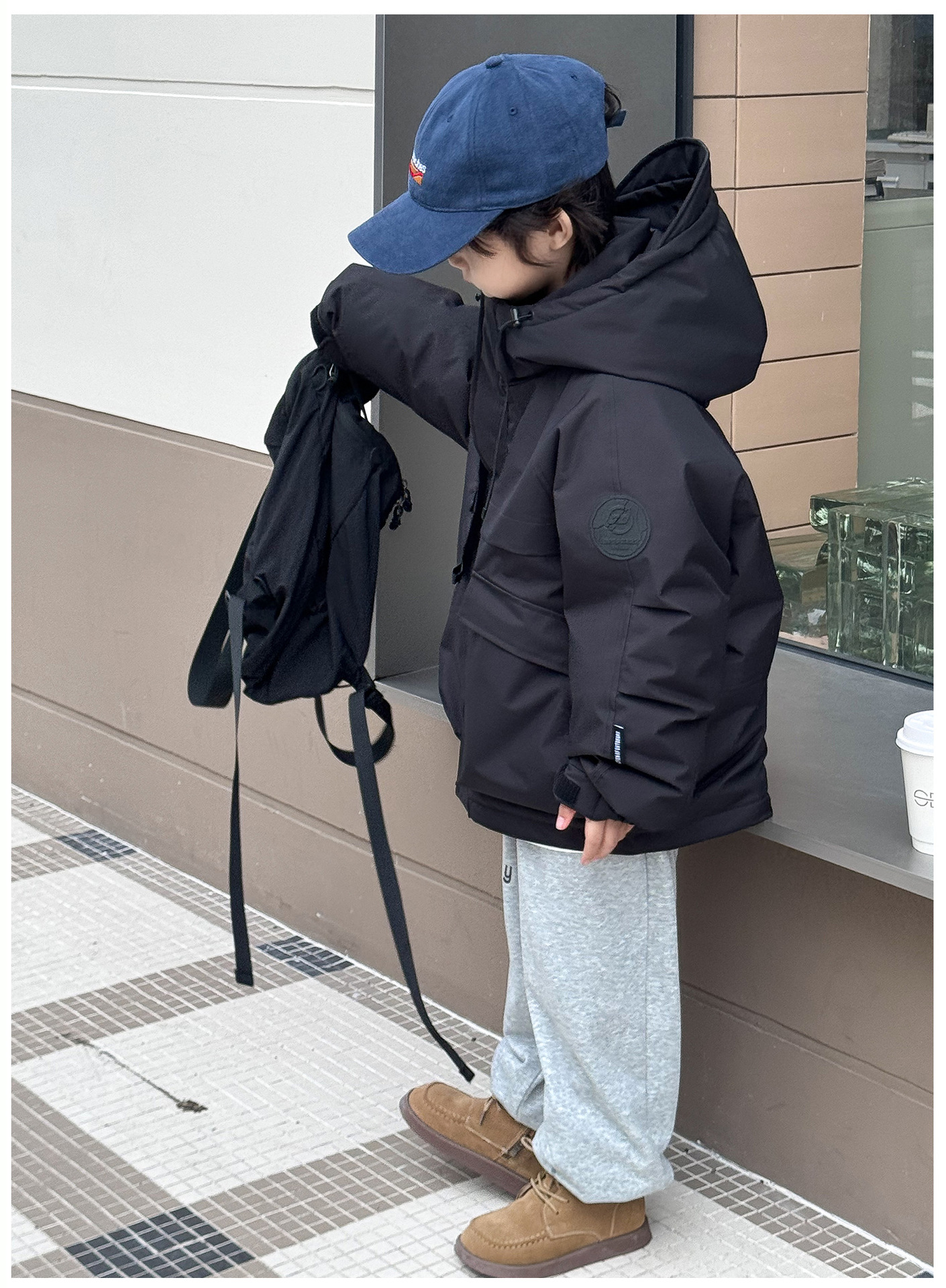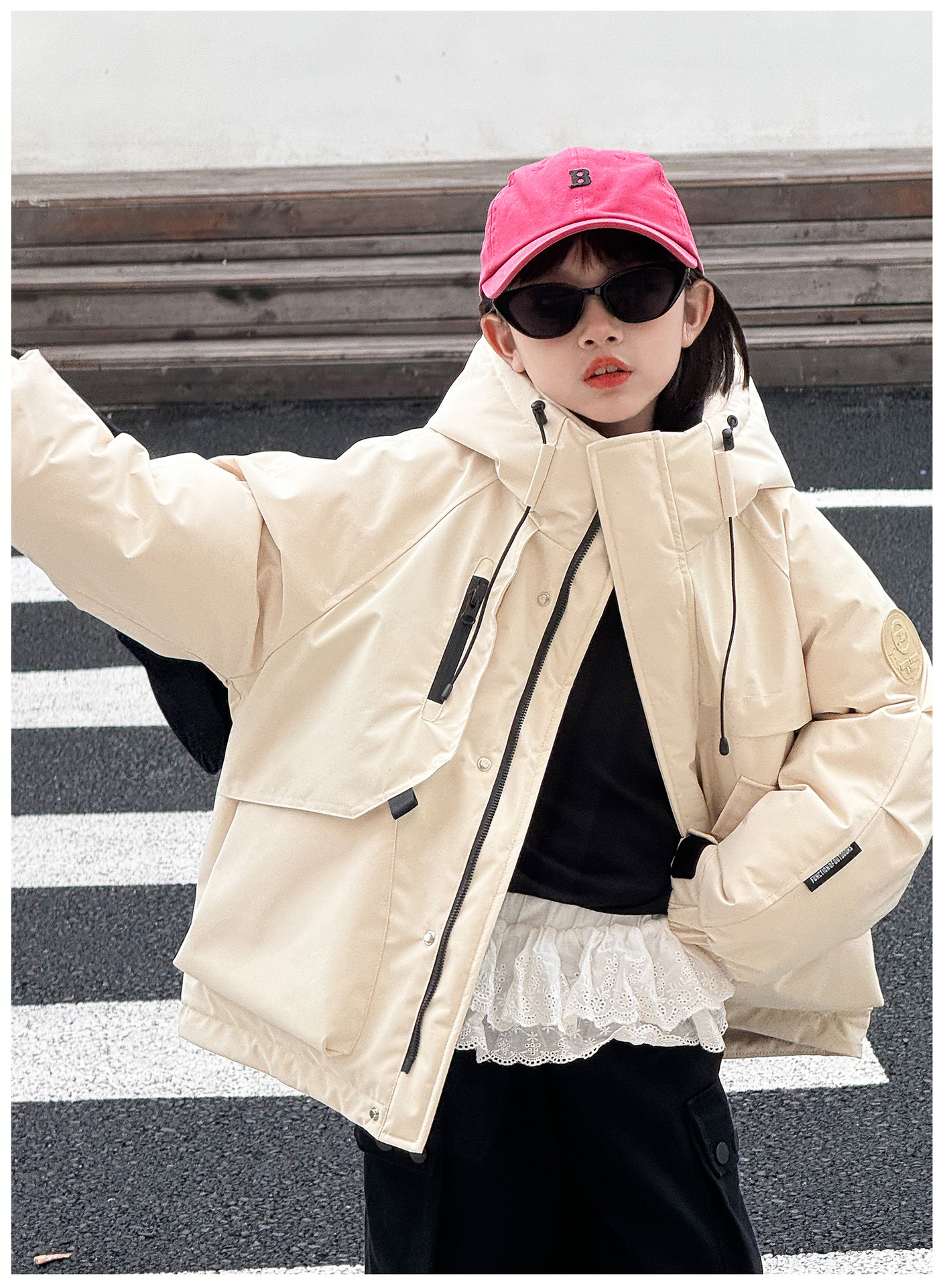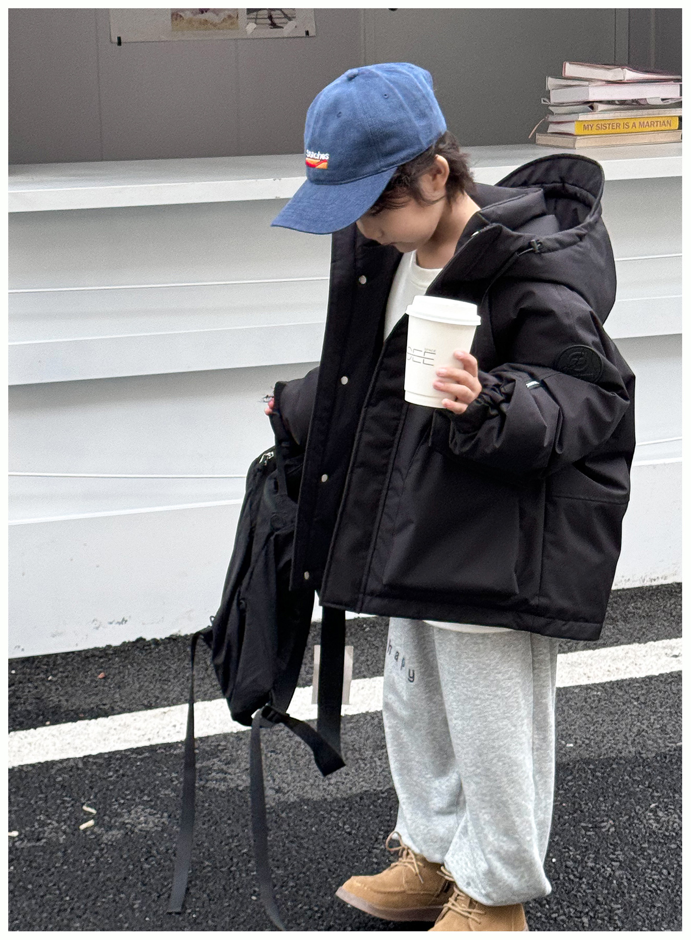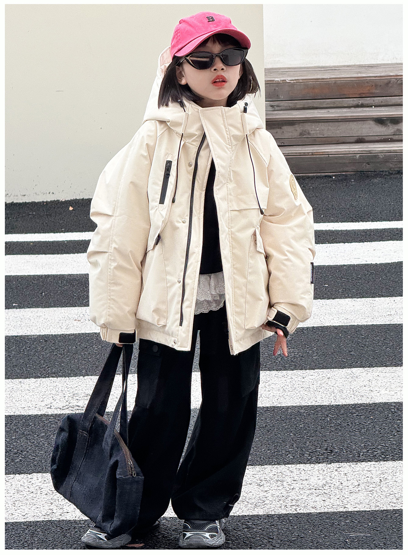 Детская рабочая куртка с утеплителем, корейский стиль, новая, для мальчиков и девочек, утепленная, водоотталкивающая, с капюшоном