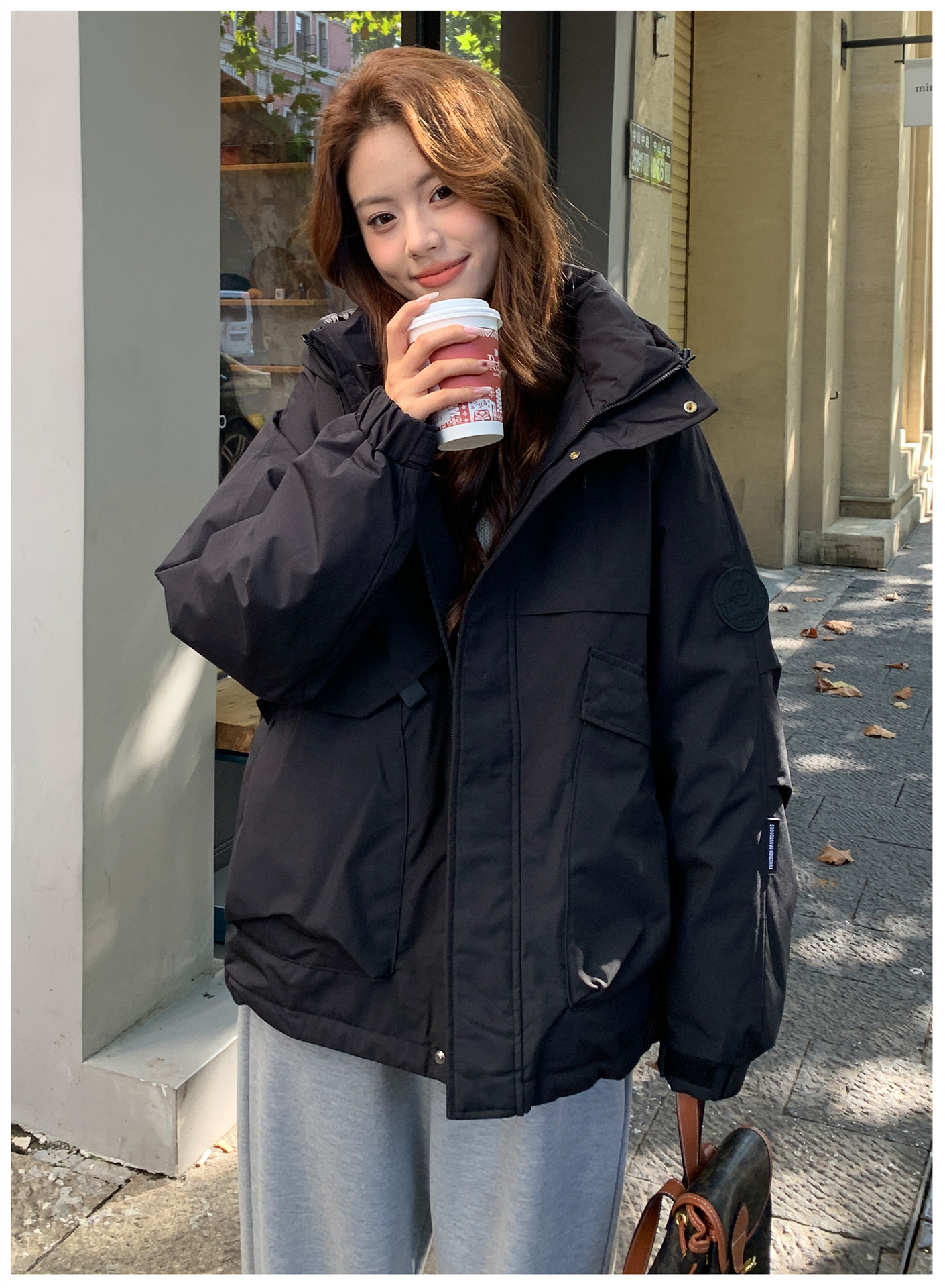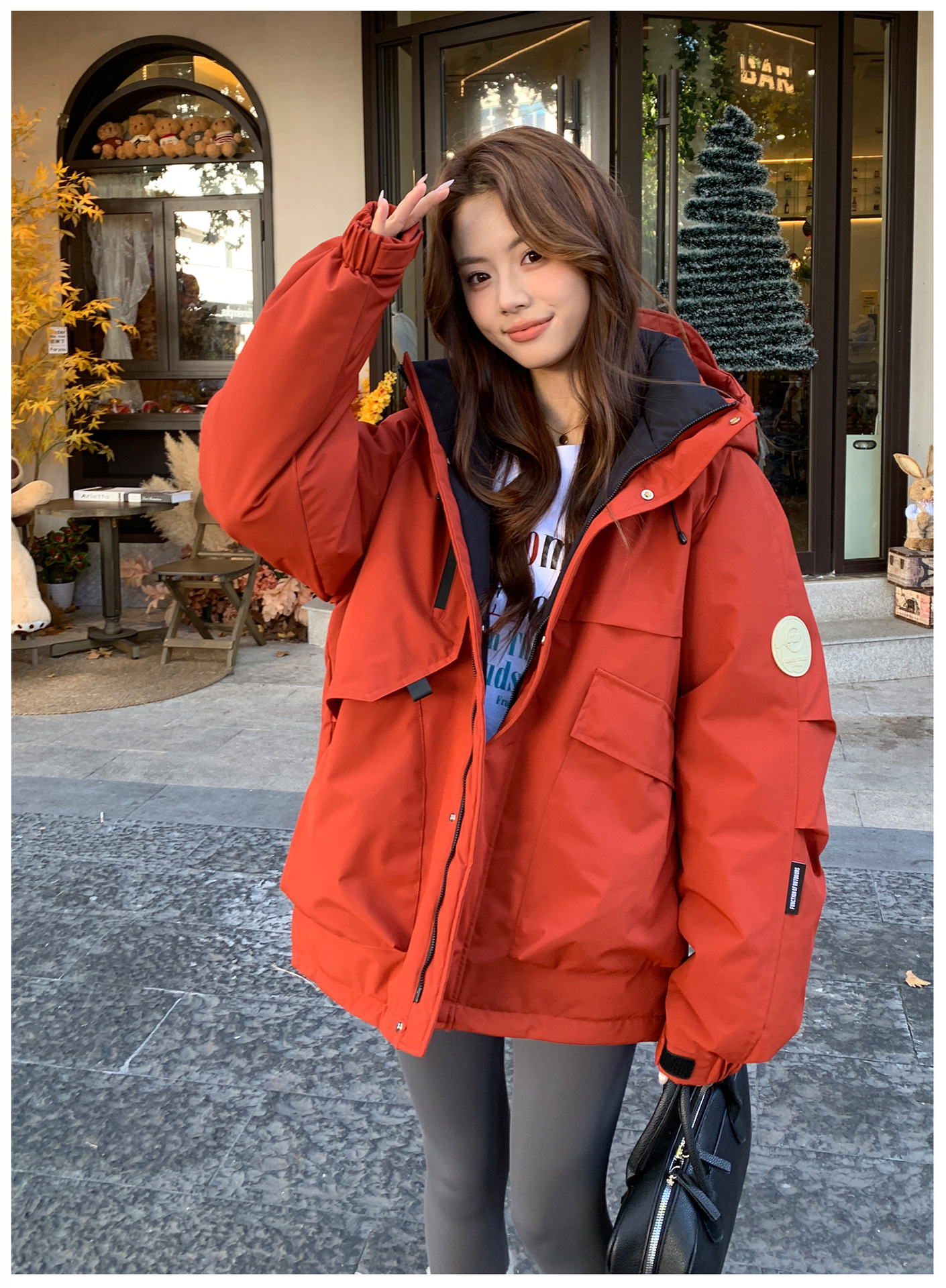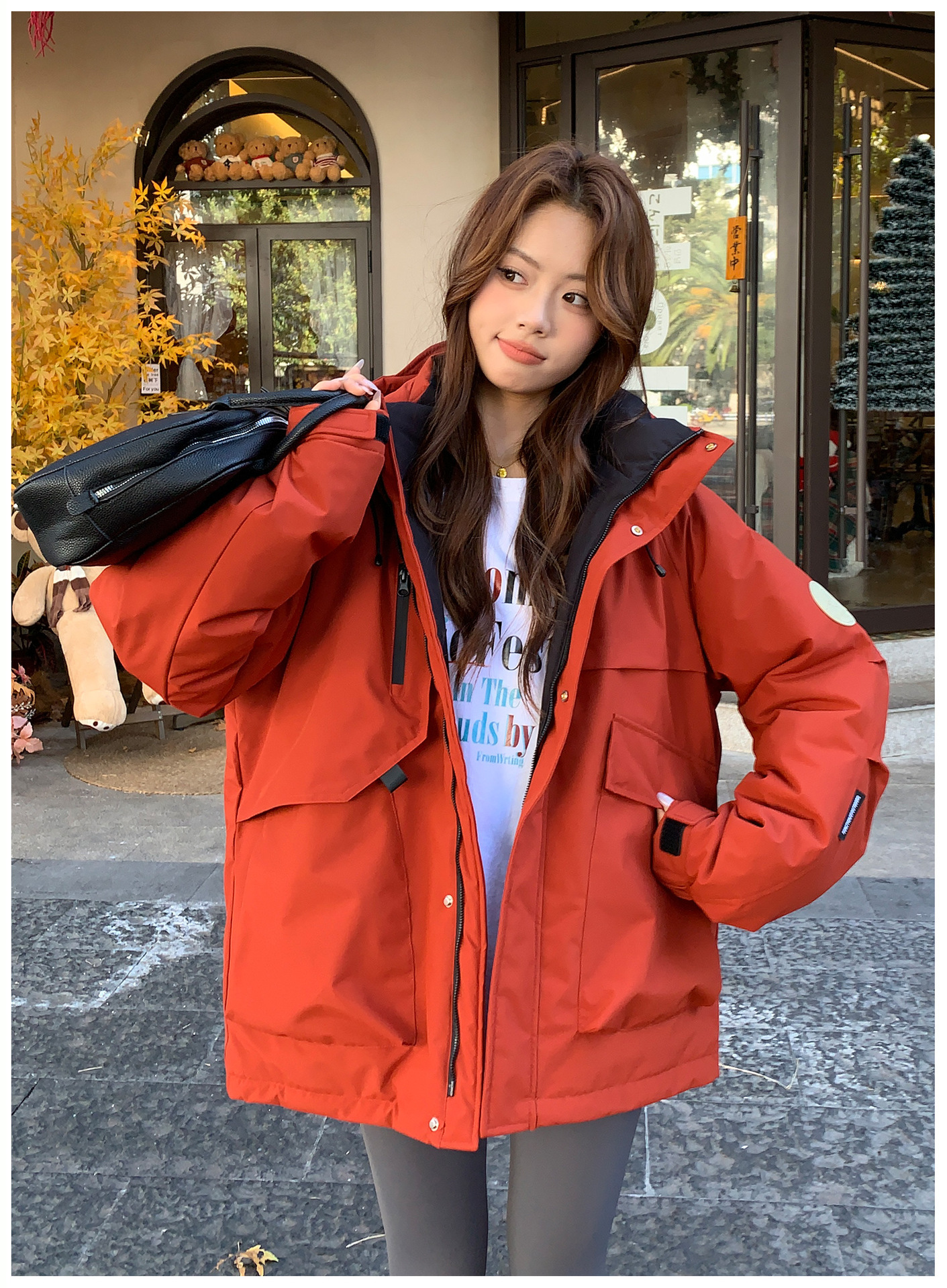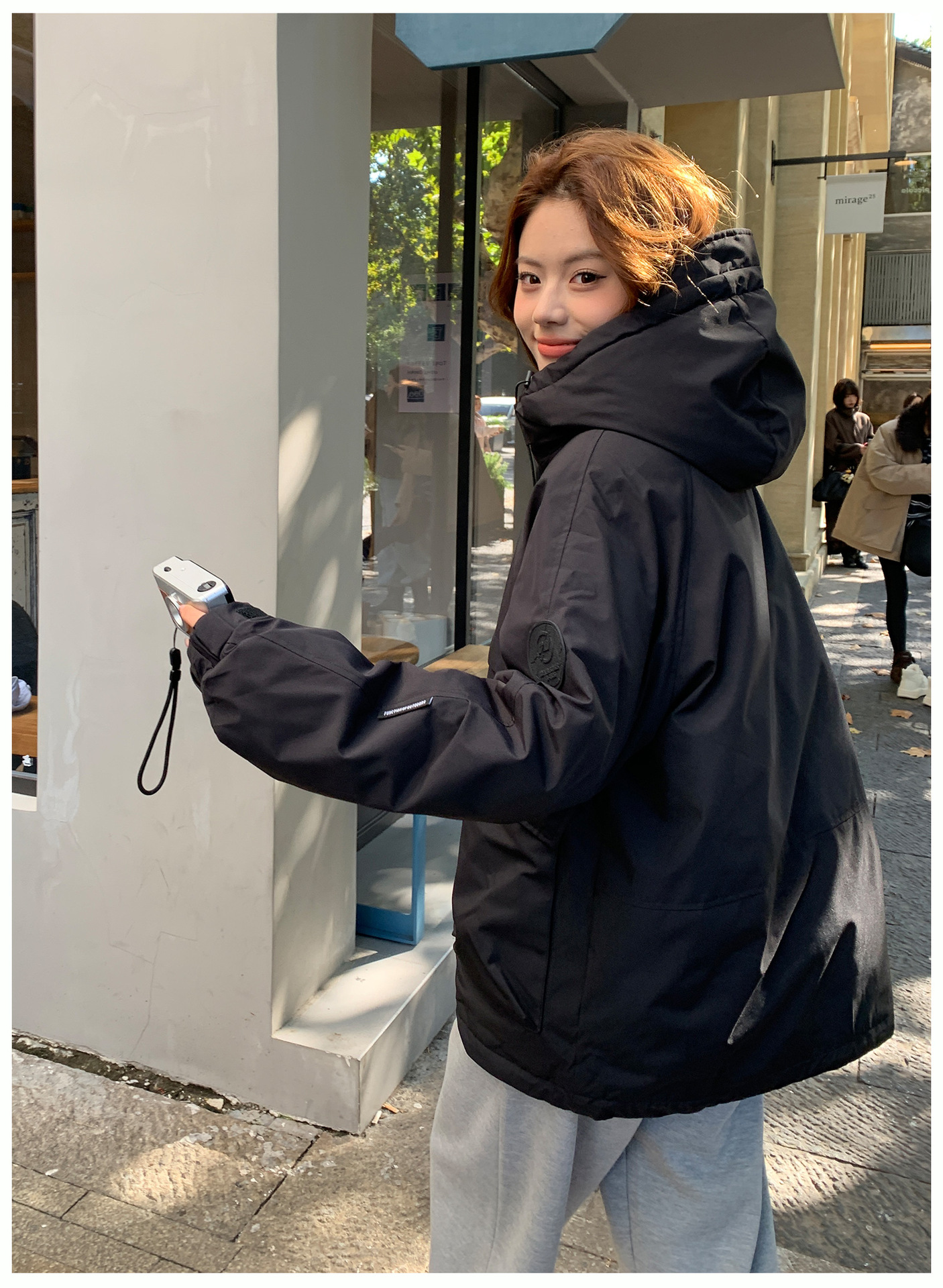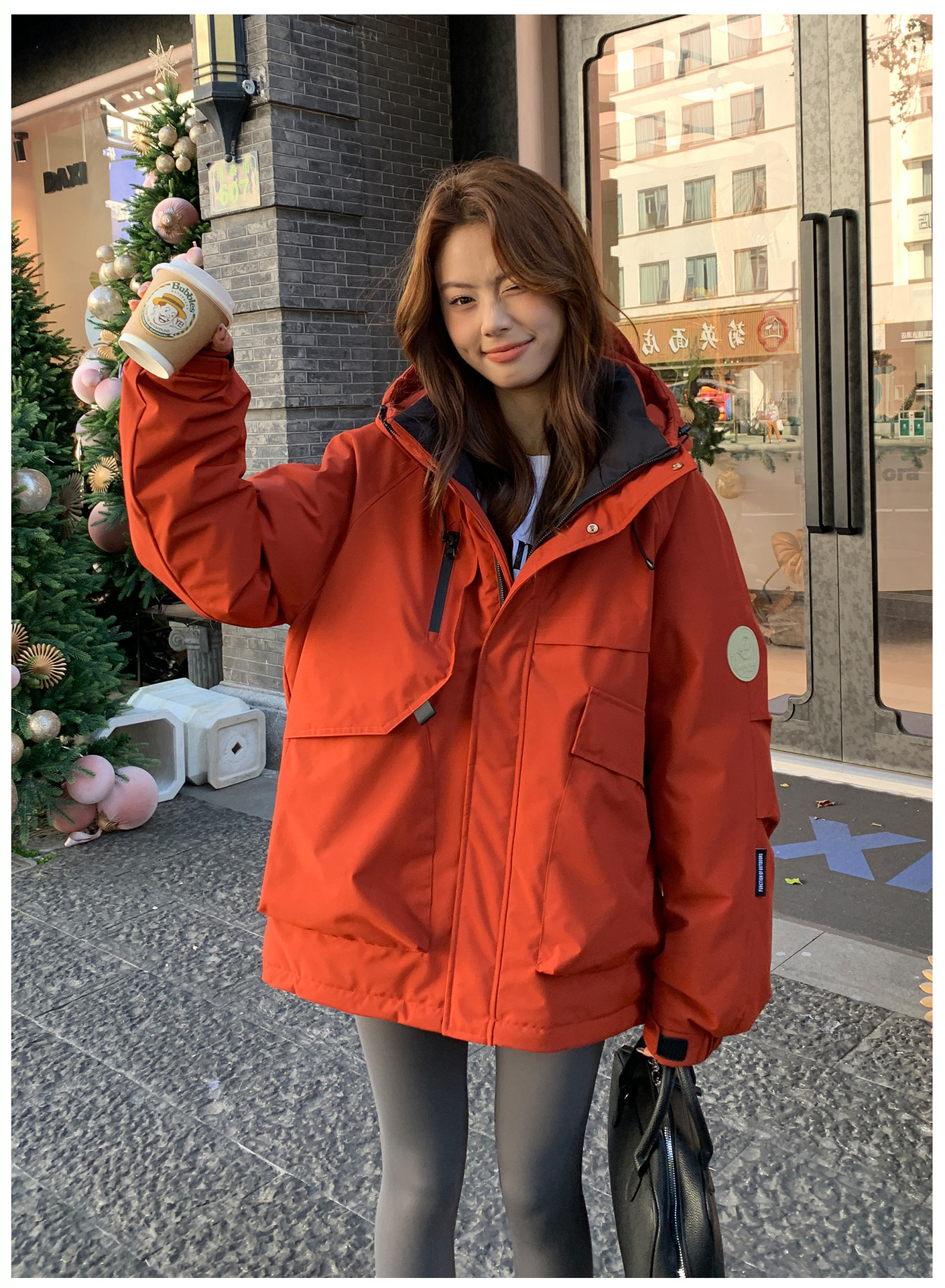 Детская рабочая куртка с утеплителем, корейский стиль, новая, для мальчиков и девочек, утепленная, водоотталкивающая, с капюшоном