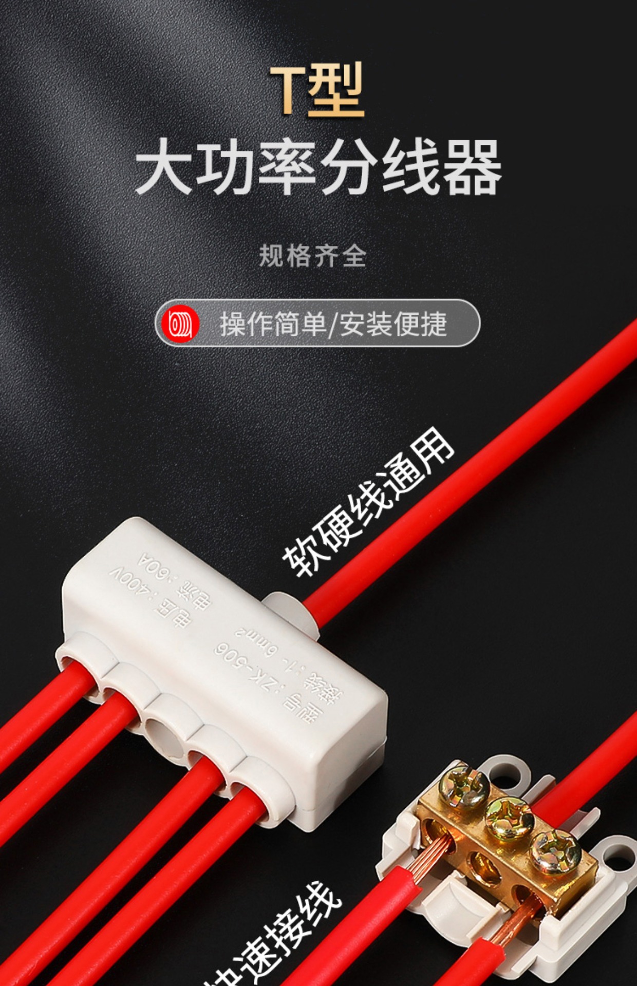 T-тип сплиттер ответвитель соединитель один вход два выхода четыре выхода высокомощный быстросъемный клеммный блок Zhuo Bai