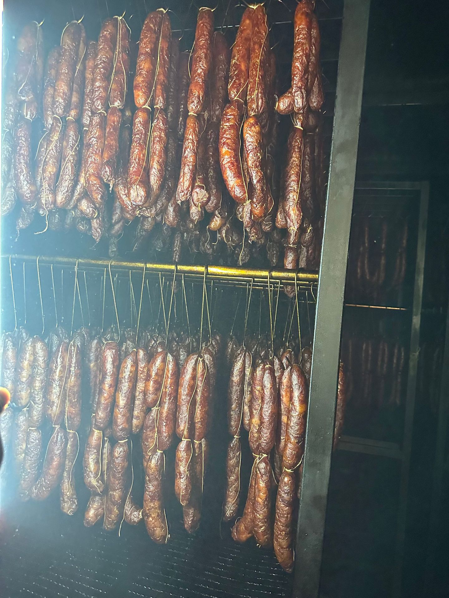 Острая колбаса с пятью специями, специальность фермерского хозяйства, аутентичная копченая свинина