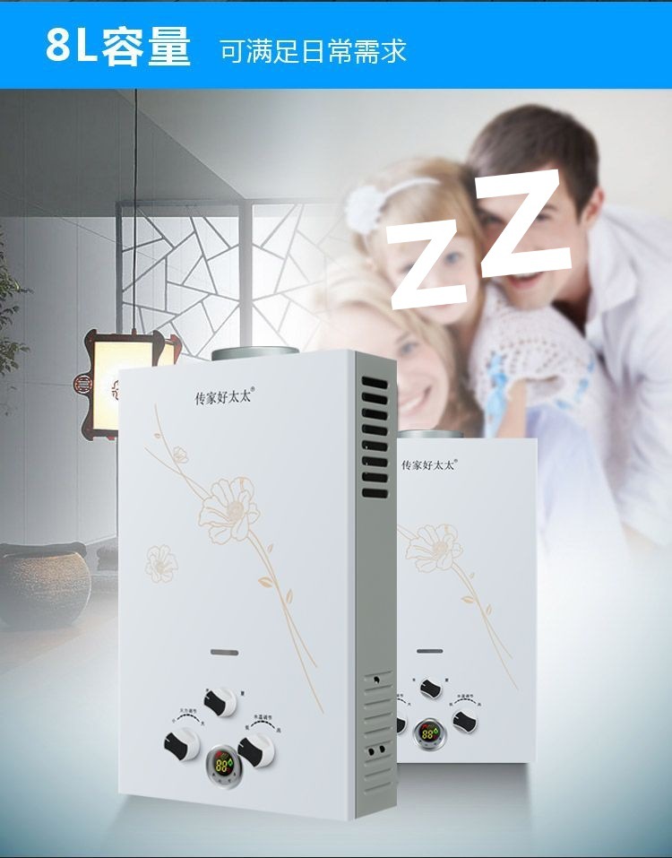 ![]() | 8-liter balanced + copper water tank (this model can be installed in the bathroom) | Liquefied petroleum gas (bottled gas) | ¥541.15 / ≈ 6 538 ₽ | 1000 | 6136968198419 | |