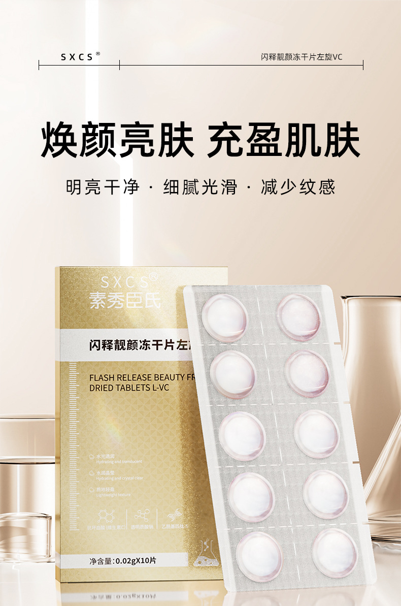 Таблетки для лица Su Xiuchen Flash-Release с лиофилизированным витамином L-Vc, улучшают тусклость и освежают тон кожи, твердые эссенции
