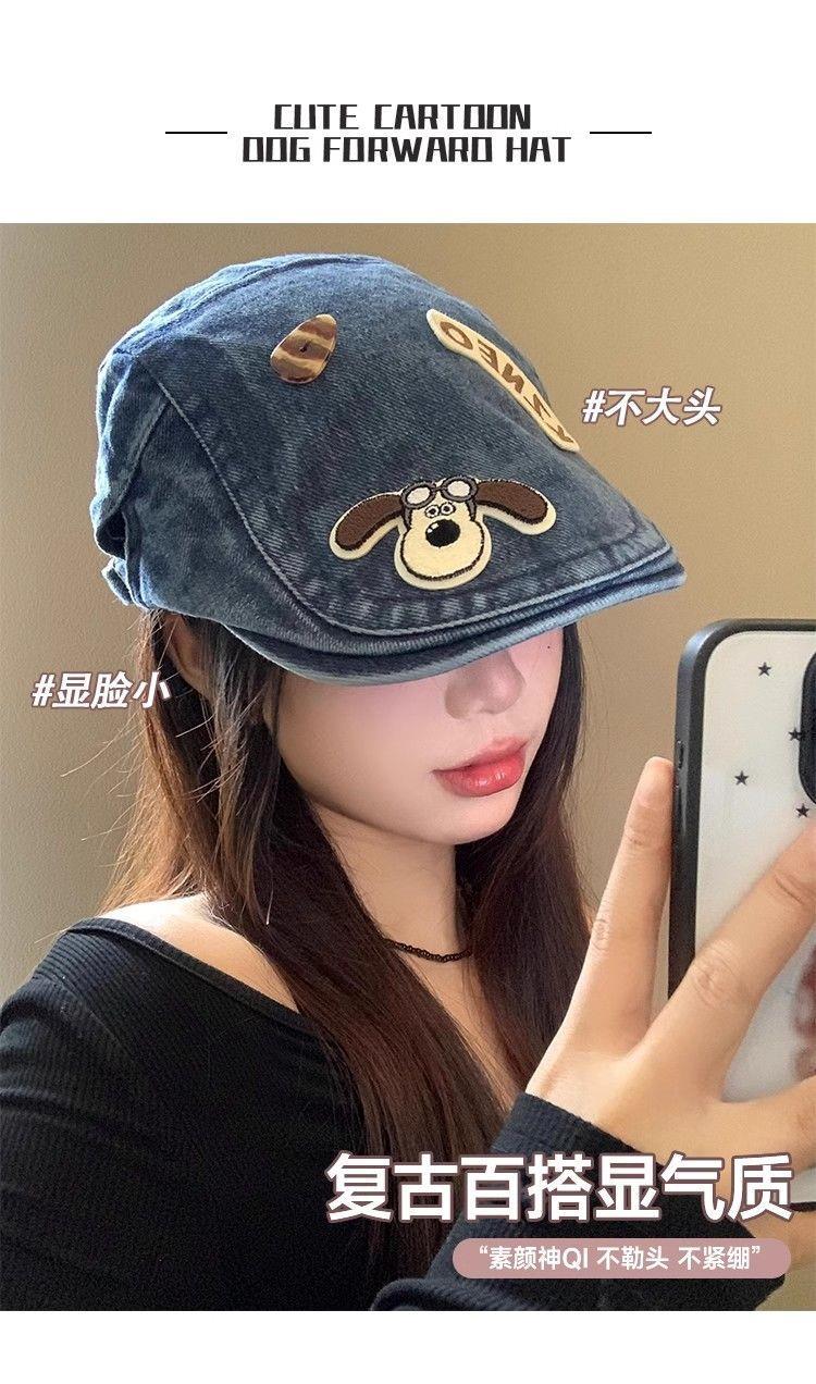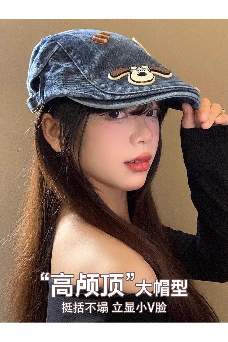 Джинсовая шляпа с кнопкой для женщин, весенне-летняя винтажная беретка, большая окружность головы, модная шляпа, визуально сужающая лицо