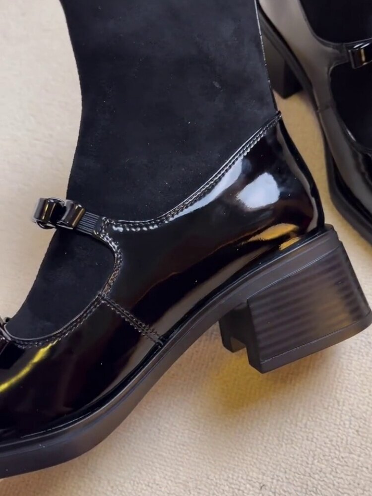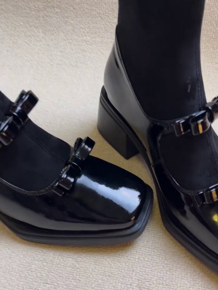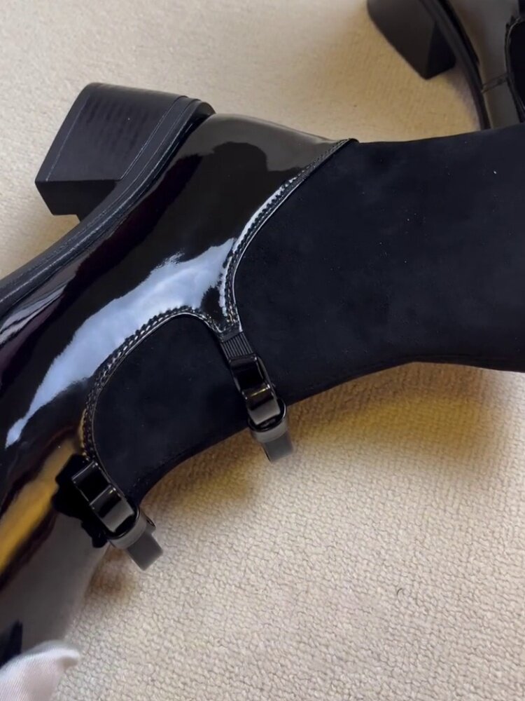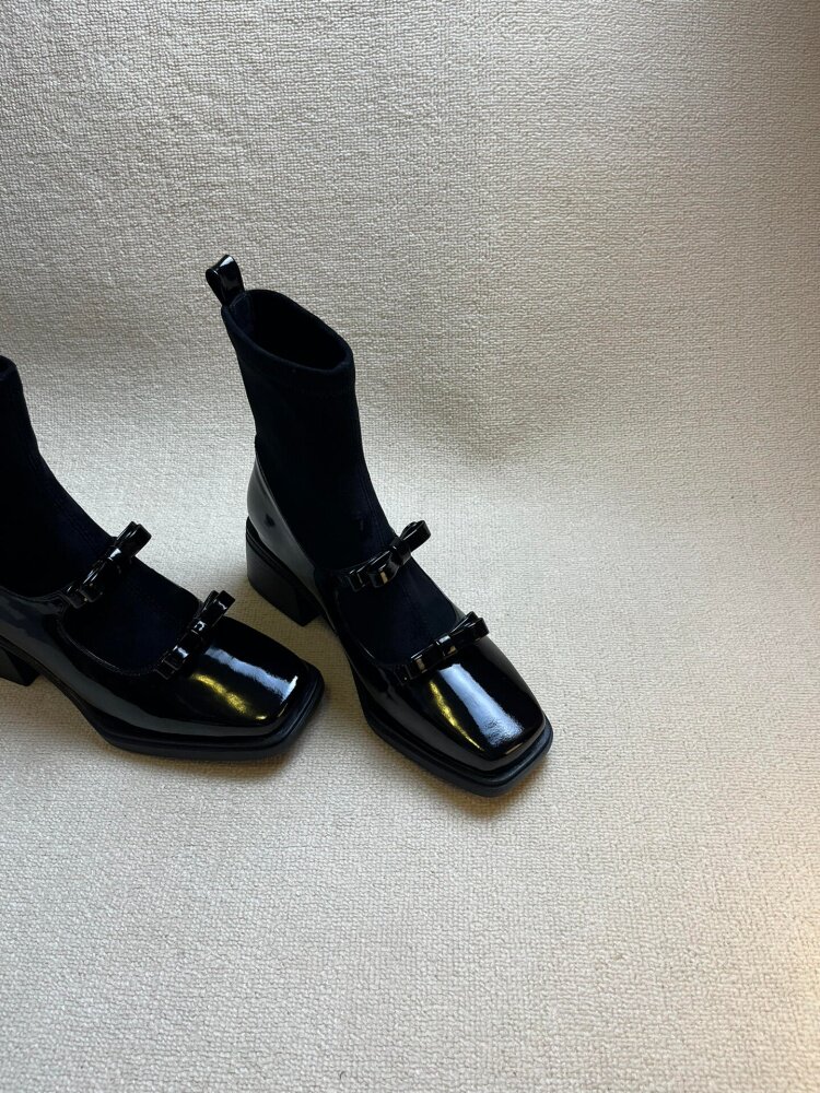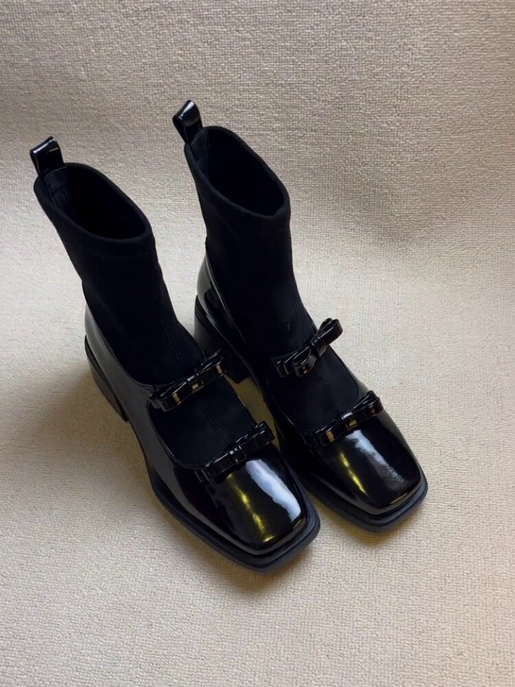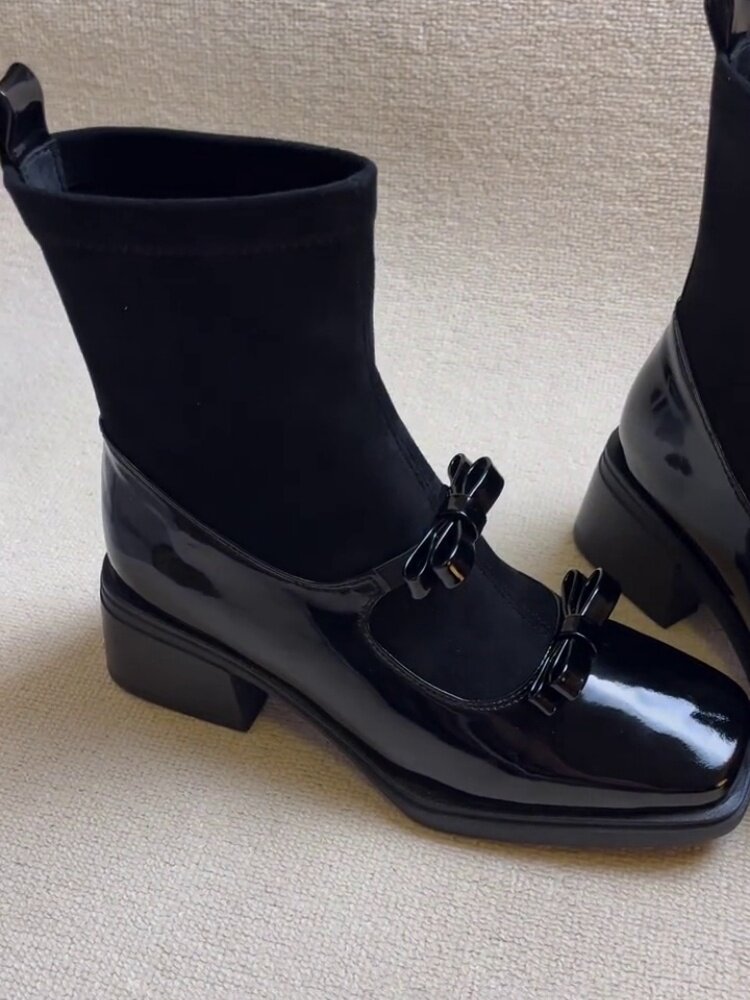 Маленькие эластичные ботинки с бантом, 2025 новый универсальный стиль, черные короткие ботинки с задней молнией и толстым каблуком
