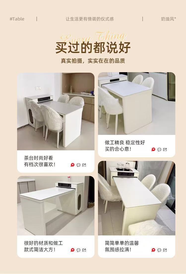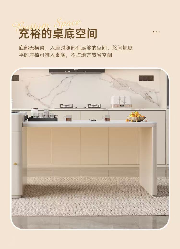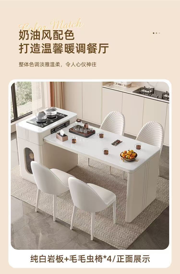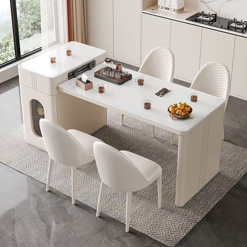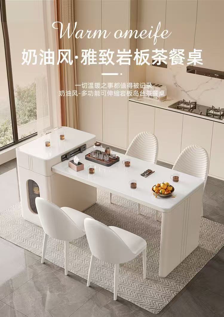 Современный простой островной обеденный стол и чайный стол из сланца, интегрированный, для небольших квартир, выдвижной, кремовый стиль