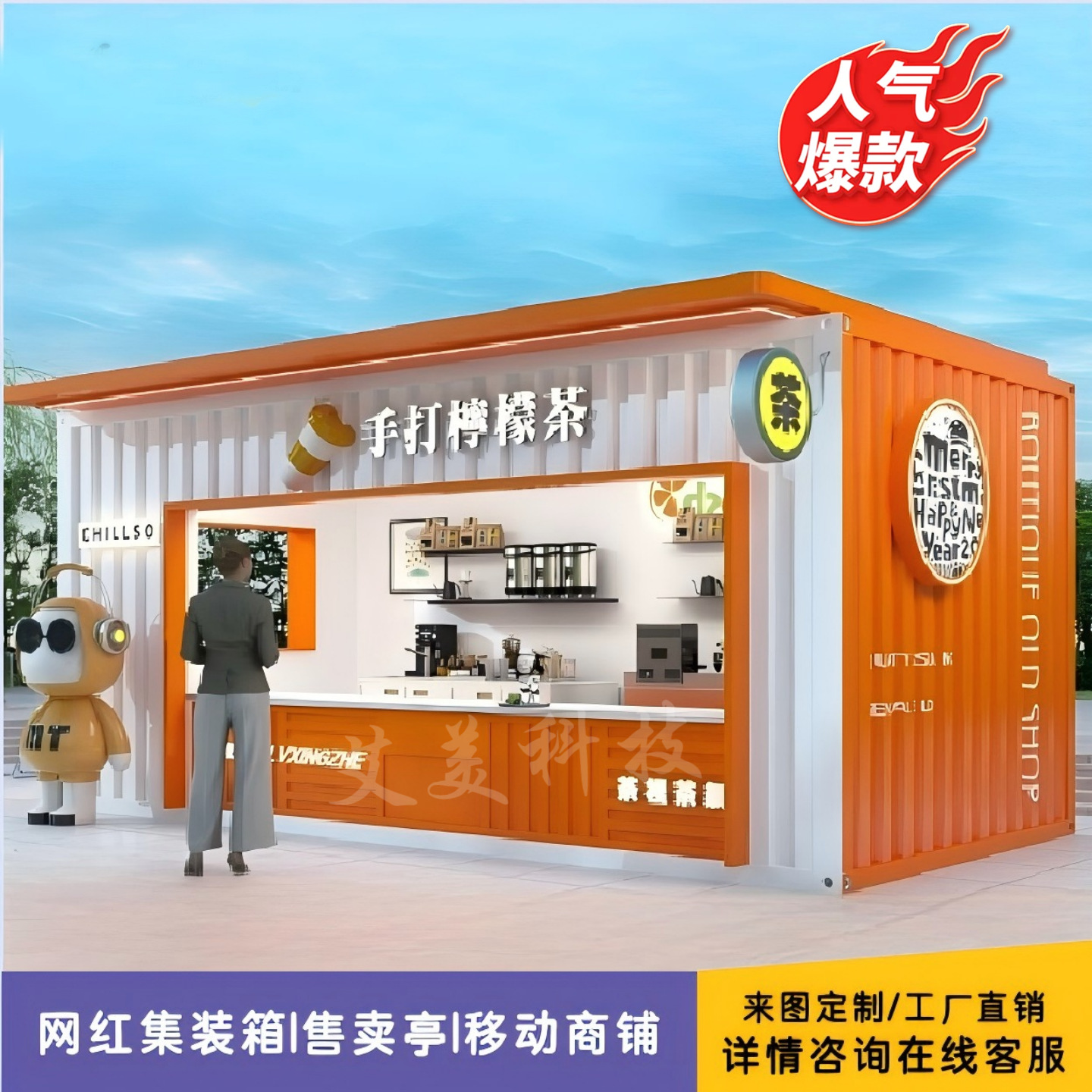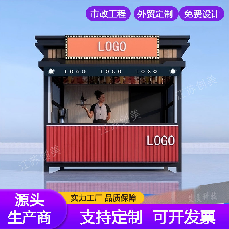 Мобильный киоск для завтраков на открытом воздухе, стильный фуд-трак, торговая точка, магазин молочного чая и кофе, многофункциональная тележка