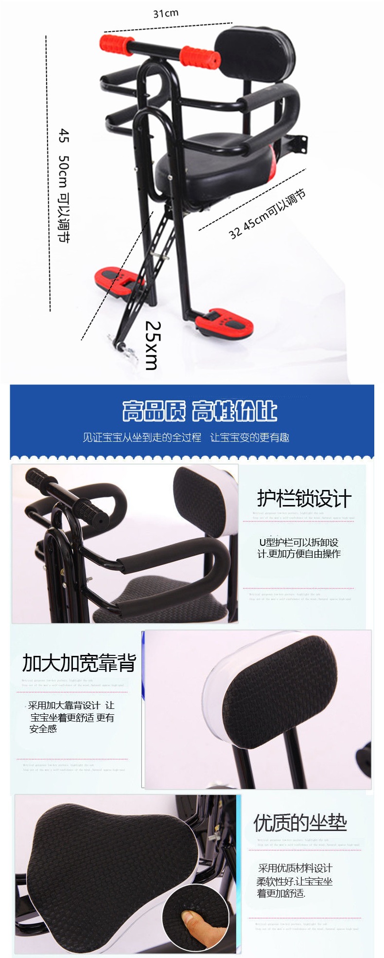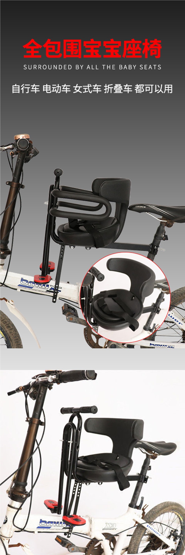 Детское переднее сиденье для велосипеда, горный велосипед, изогнутая рама, складной велосипед, универсальное хлопковое сиденье для малыша
