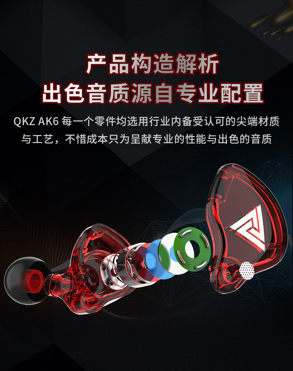 Наушники Qkz Ak6 с проводным управлением, внутриканальные, с микрофоном, мощный бас, для мобильных телефонов, популярные спортивные наушники