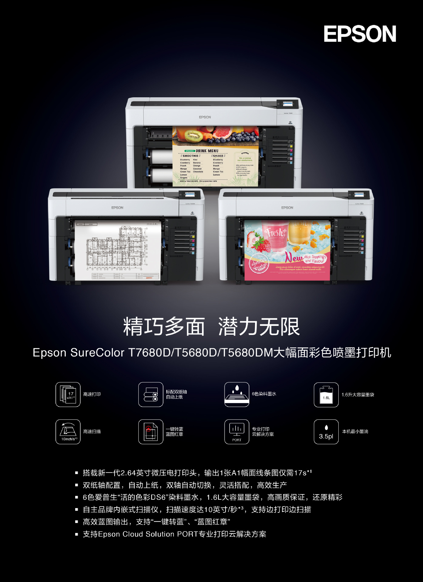 销售爱普生大幅面全系列打印机,耗材及维修。