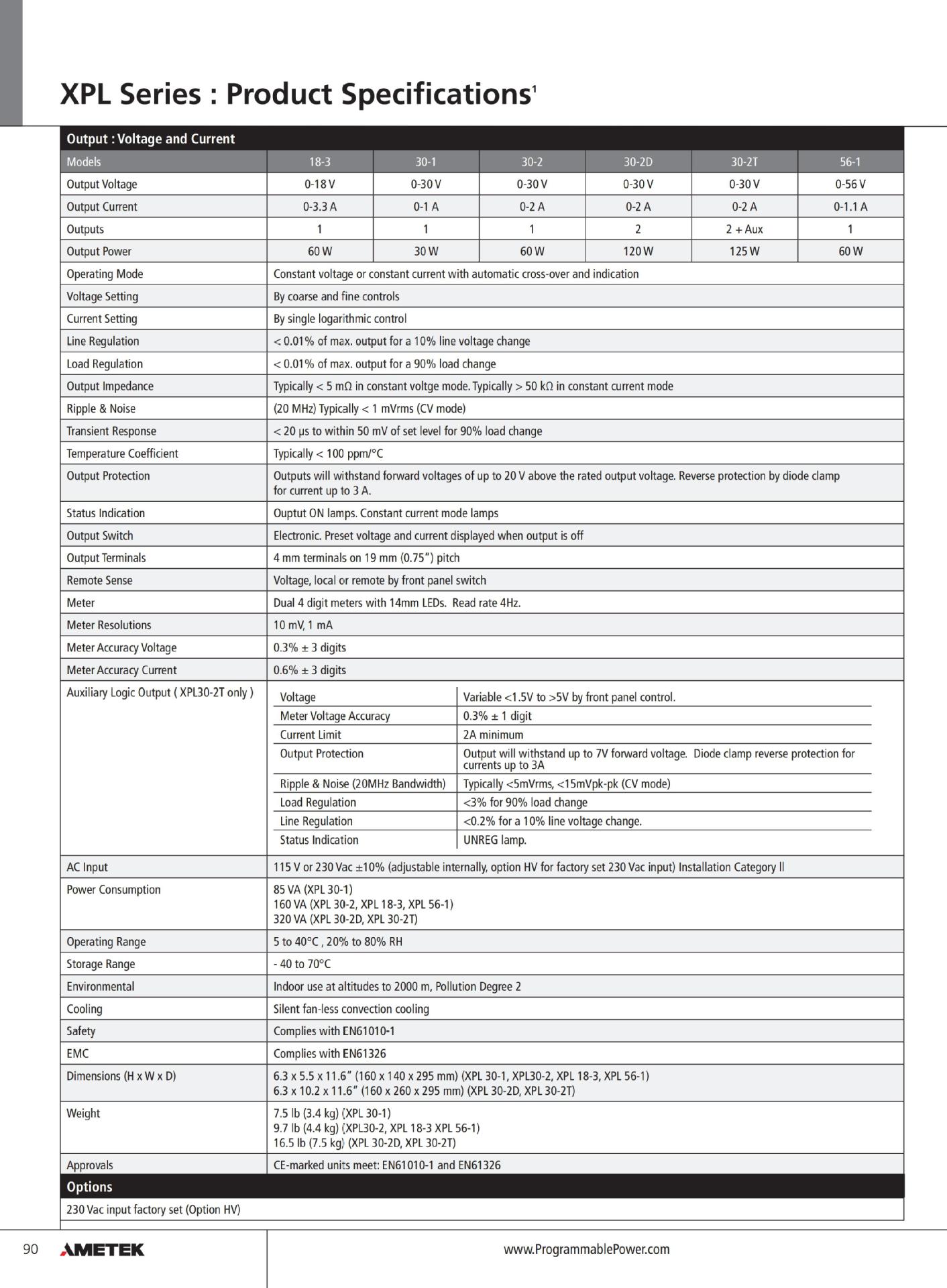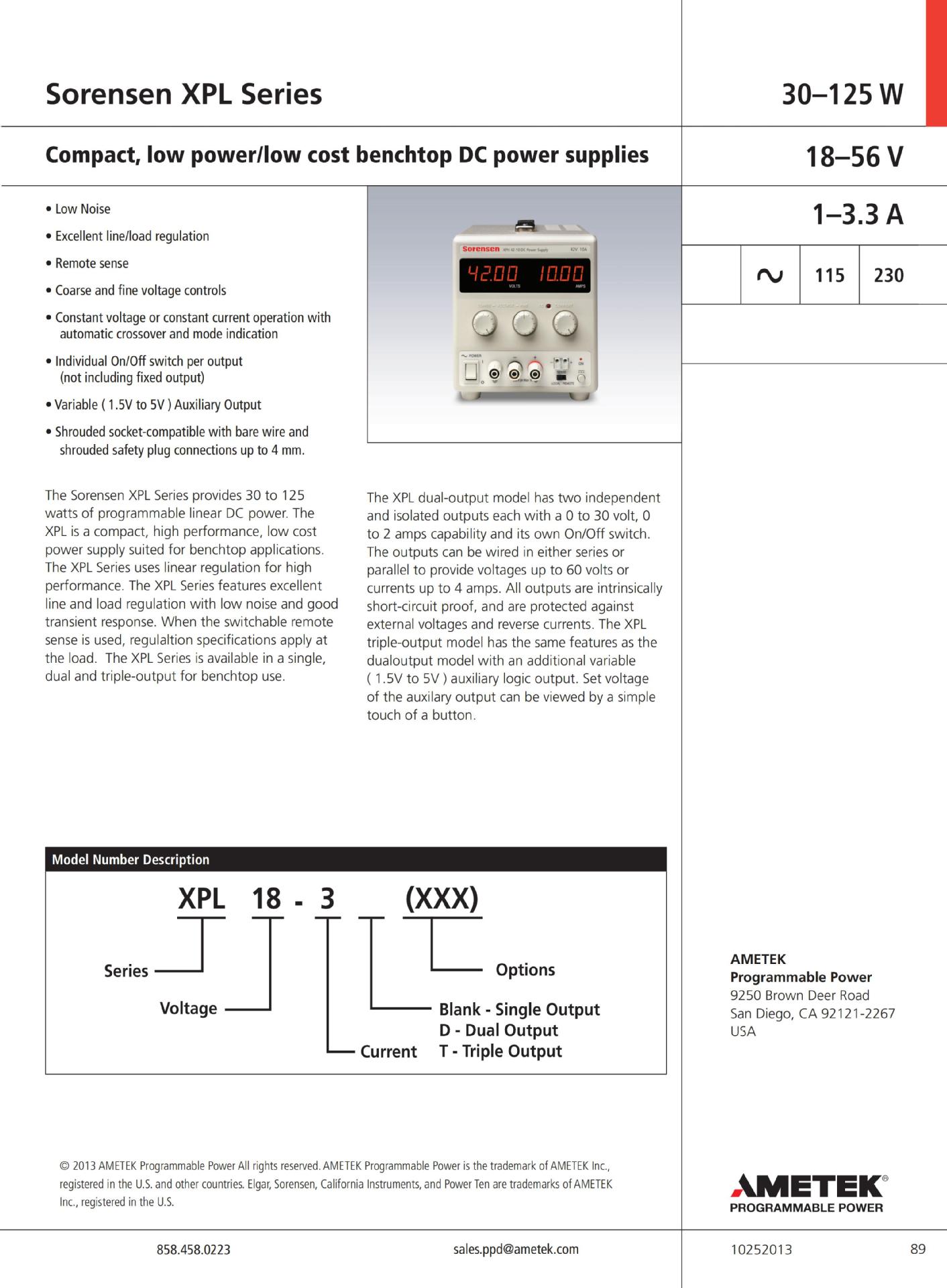 Экономичный компактный настольный источник питания Ametek Xpl18-3/30-1/30-20/56-1 серии Xpl