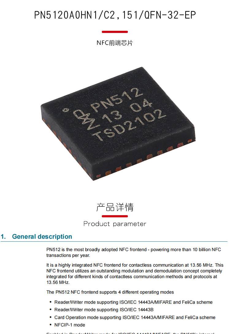 Оригинальный подлинный чип Pn5120A0Hn1/C2,151 Qfn-32-Ep Nfc фронтальный чип
