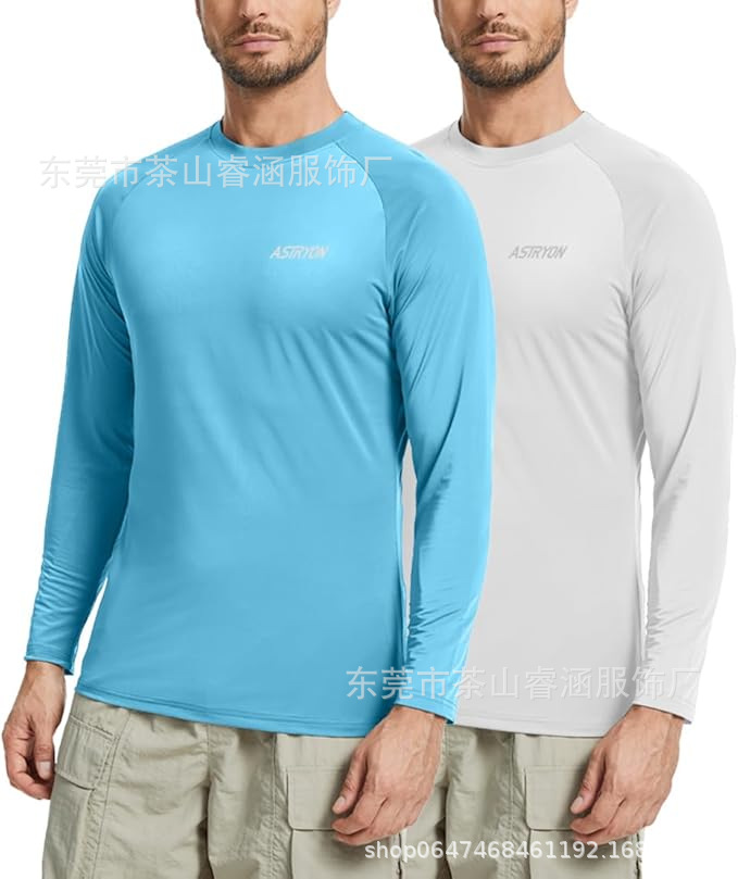 Кросс-бордерная одежда для рыбалки в Европе и Америке, защита от УФ, длинные рукава, летняя дышащая футболка быстросохнущая, однотонная
