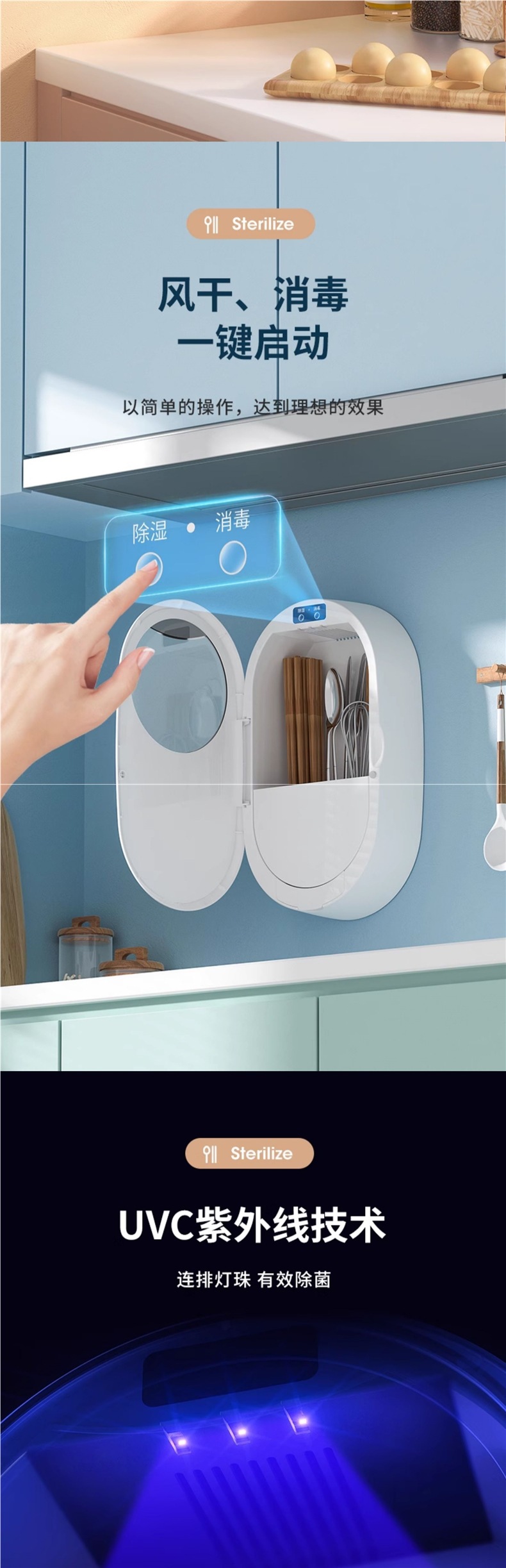 Стерилизатор палочек для еды, кухонный, малый, умный, УФ, перезаряжаемый, настенный, быстрый, бесплатная доставка