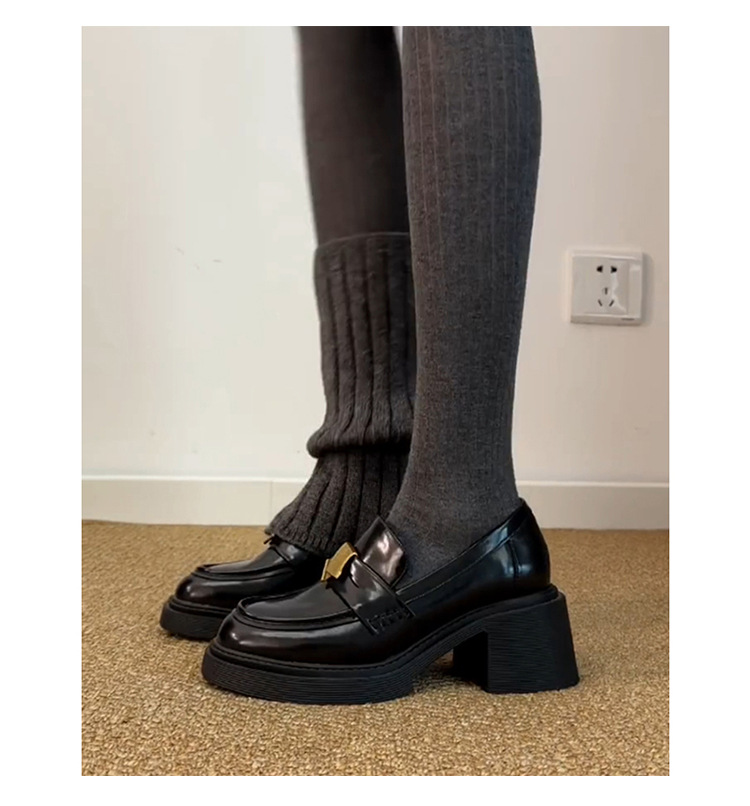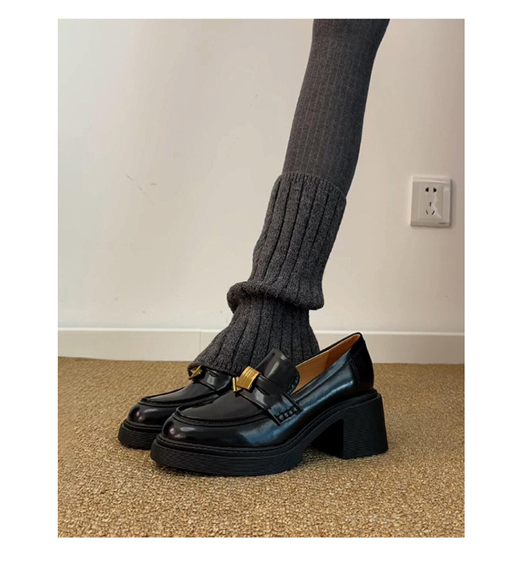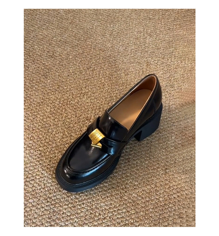 Туфли-лоферы с толстым каблуком и металлической пряжкой для женщин, стиль британской рабочей одежды, универсальные маленькие кожаные туфли из овчины