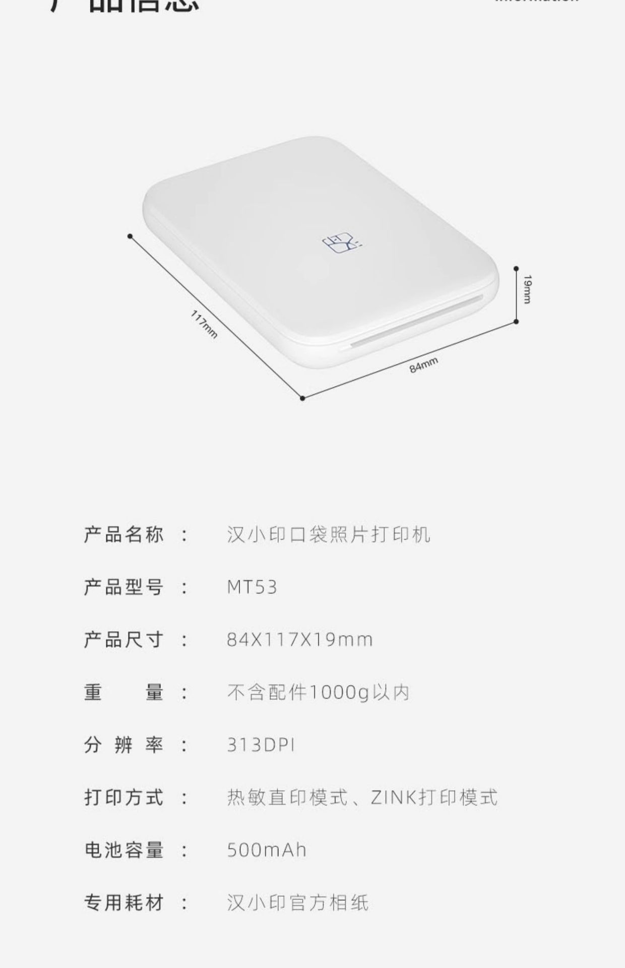 Портативный беспроводной фотопринтер Hanyin Mt53 для мобильных телефонов, домашний малый фотопринтер
