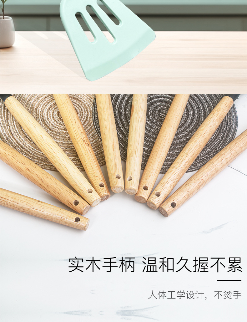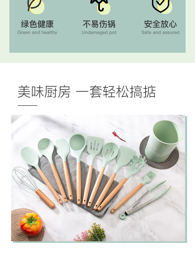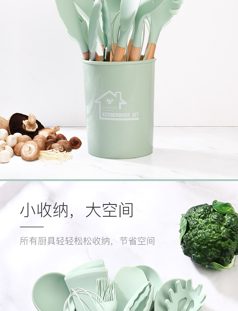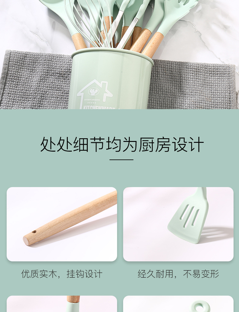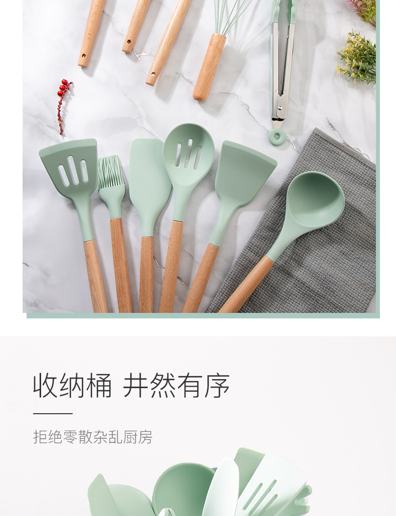 Кухонный набор с деревянной ручкой, силиконовая лопатка, ложка для готовки, не прилипает, 12 наборов, ведро для хранения