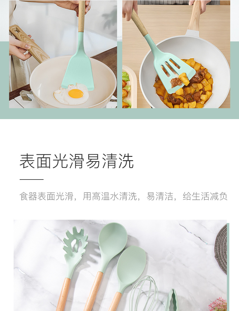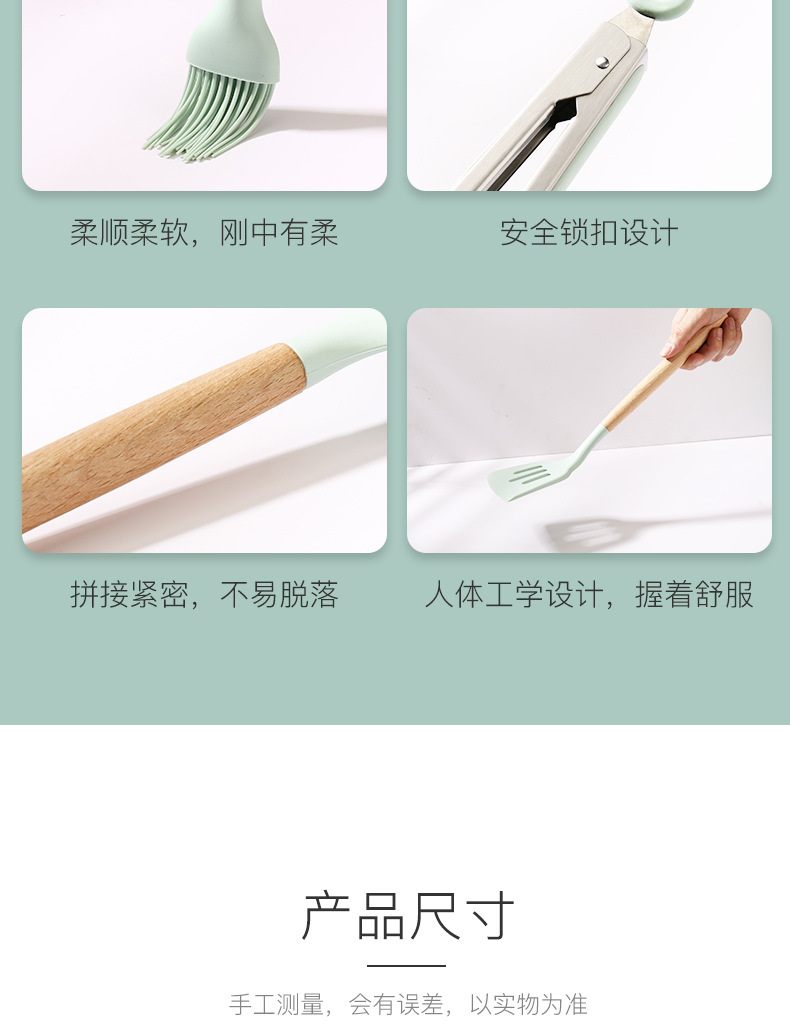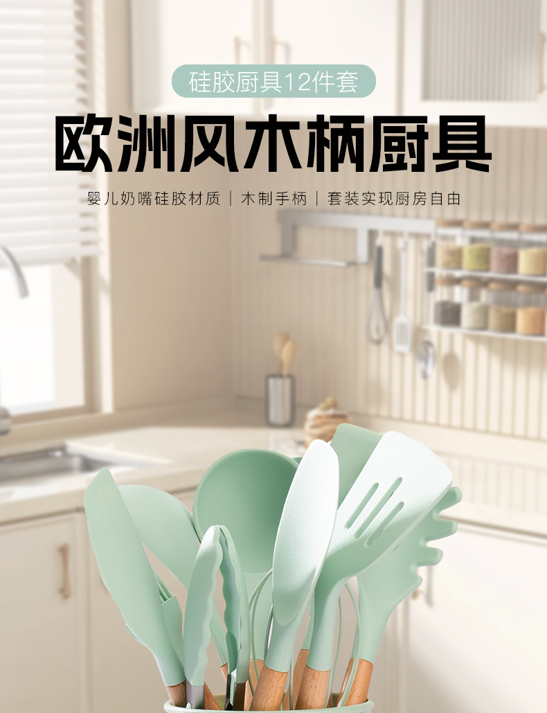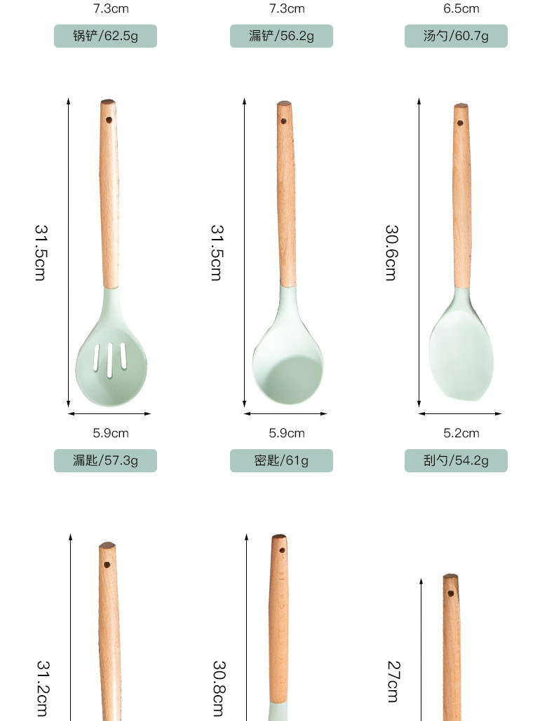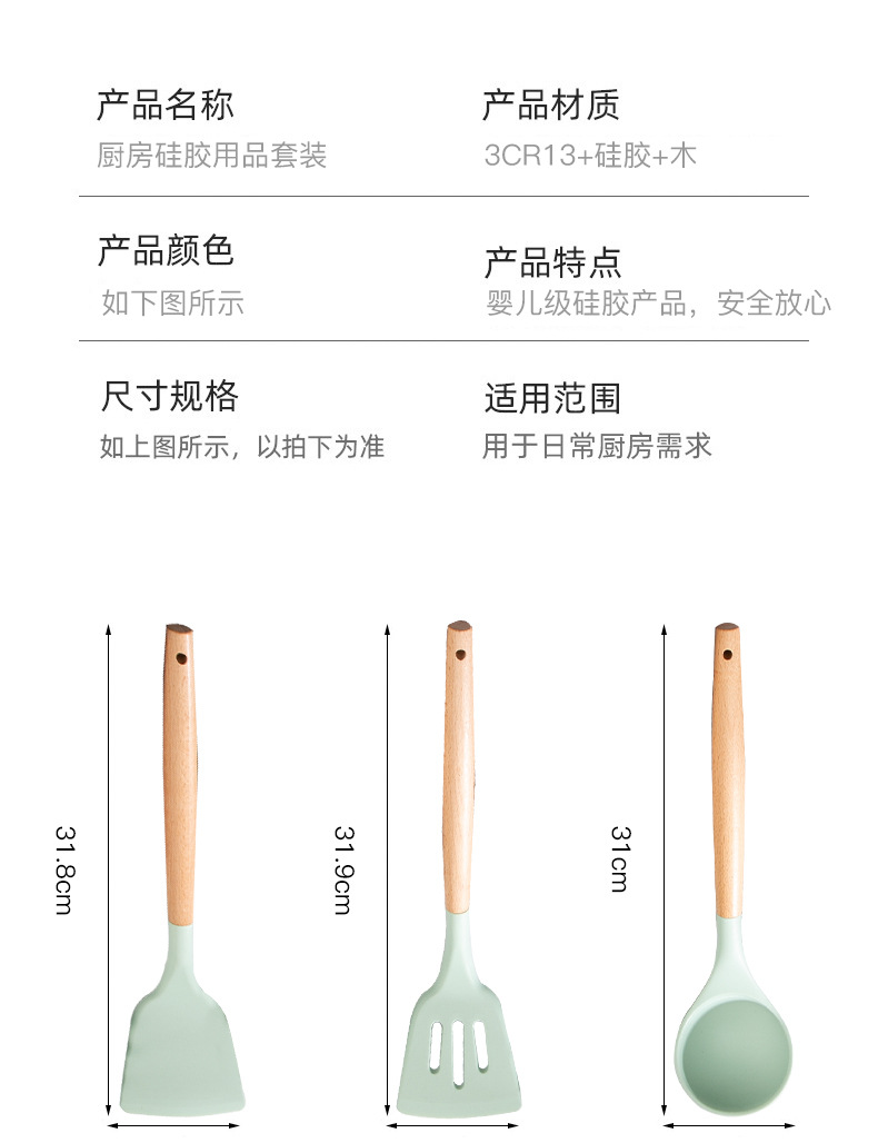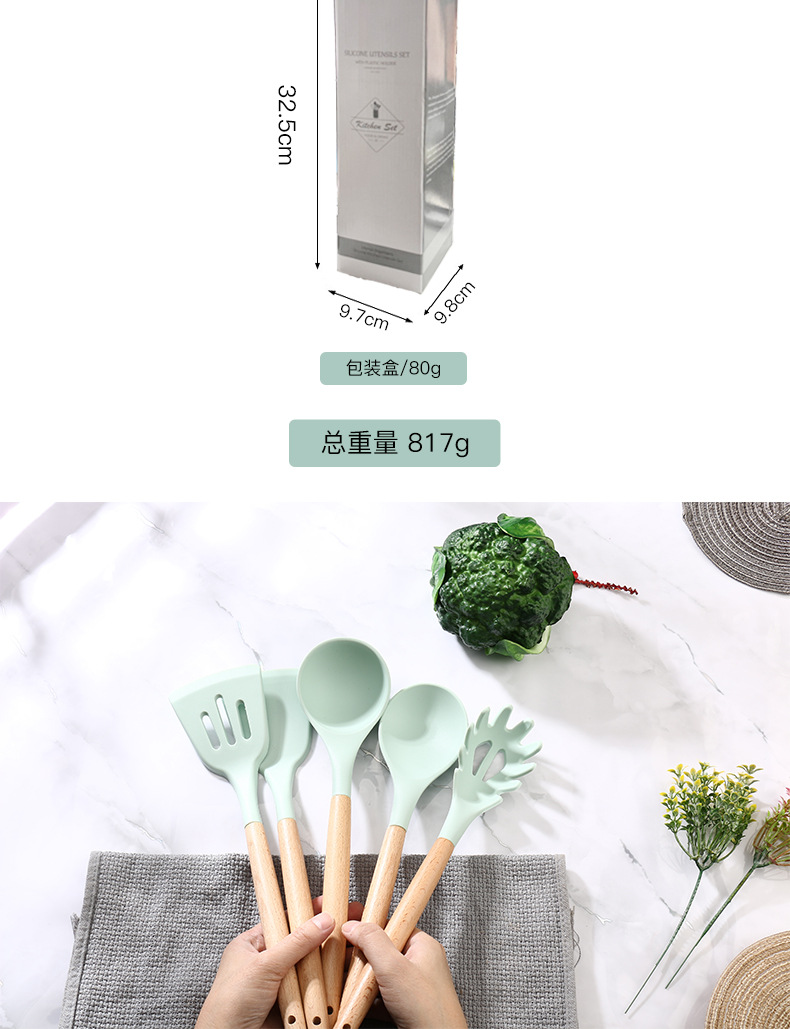 Кухонный набор с деревянной ручкой, силиконовая лопатка, ложка для готовки, не прилипает, 12 наборов, ведро для хранения