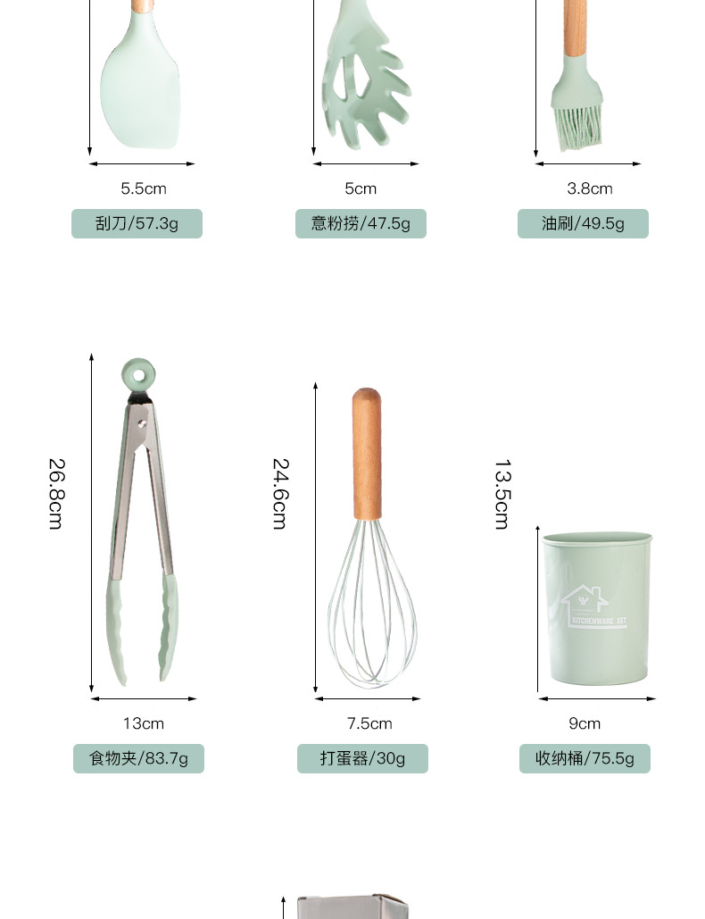 ![]() | Silicone kitchenware 14-piece set 817g-light green | ¥20.5 / ≈ 247 ₽ | 10000 | 6135764914130 | |