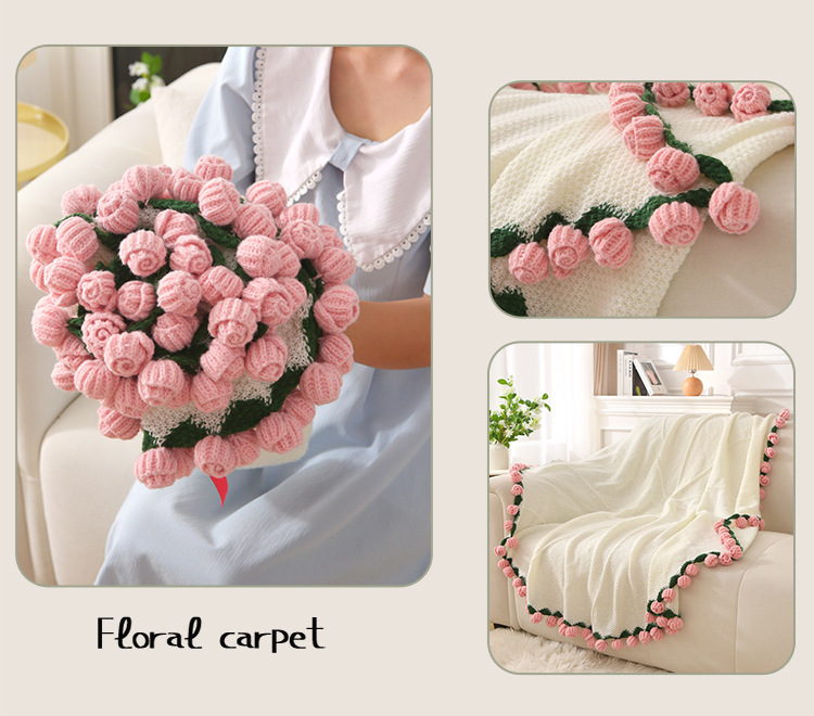 Готовый вязаный плед с букетом, вязаный плед с розами, плед для сна, вязаный плед, подарок на День святого Валентина