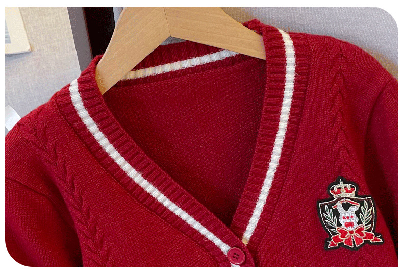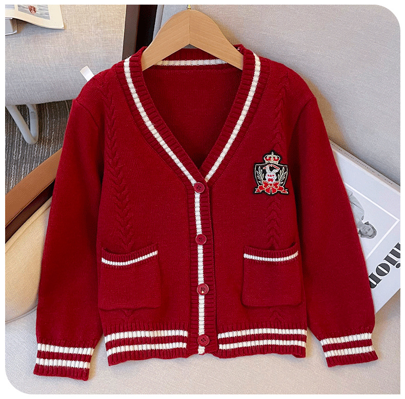 Детский кардиган в стиле преппи для девочек, вязаная куртка на осень и зиму, корейский свитер, верхняя одежда для детей