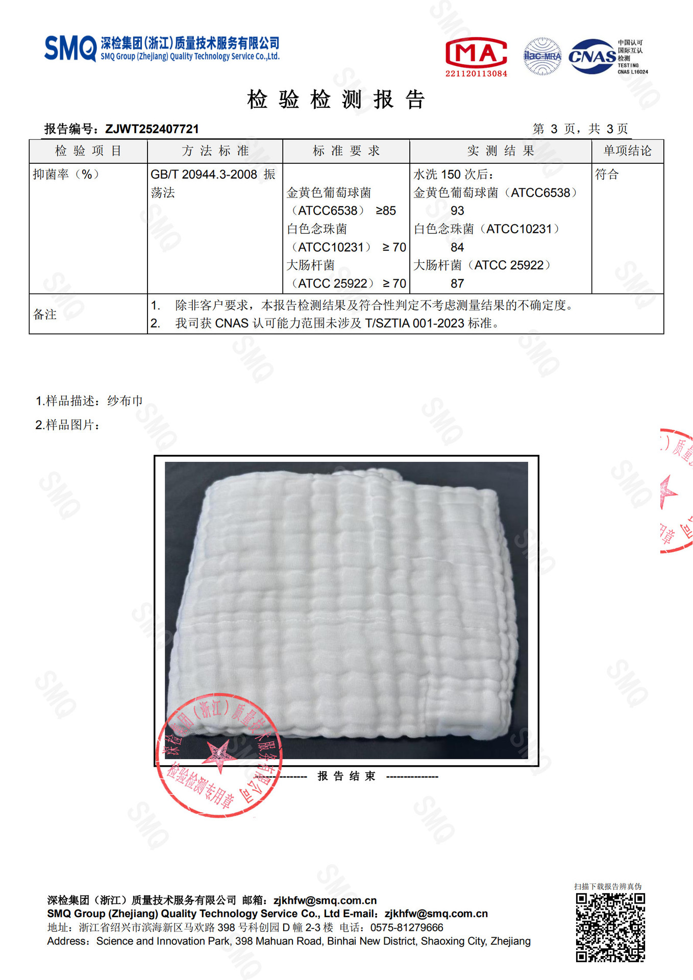 面料:纯棉六层纱布