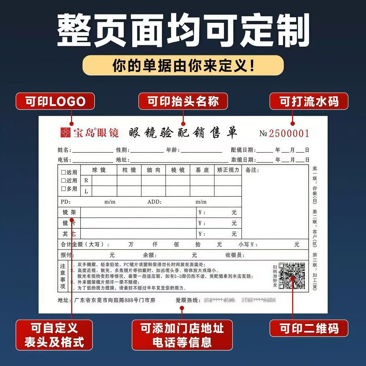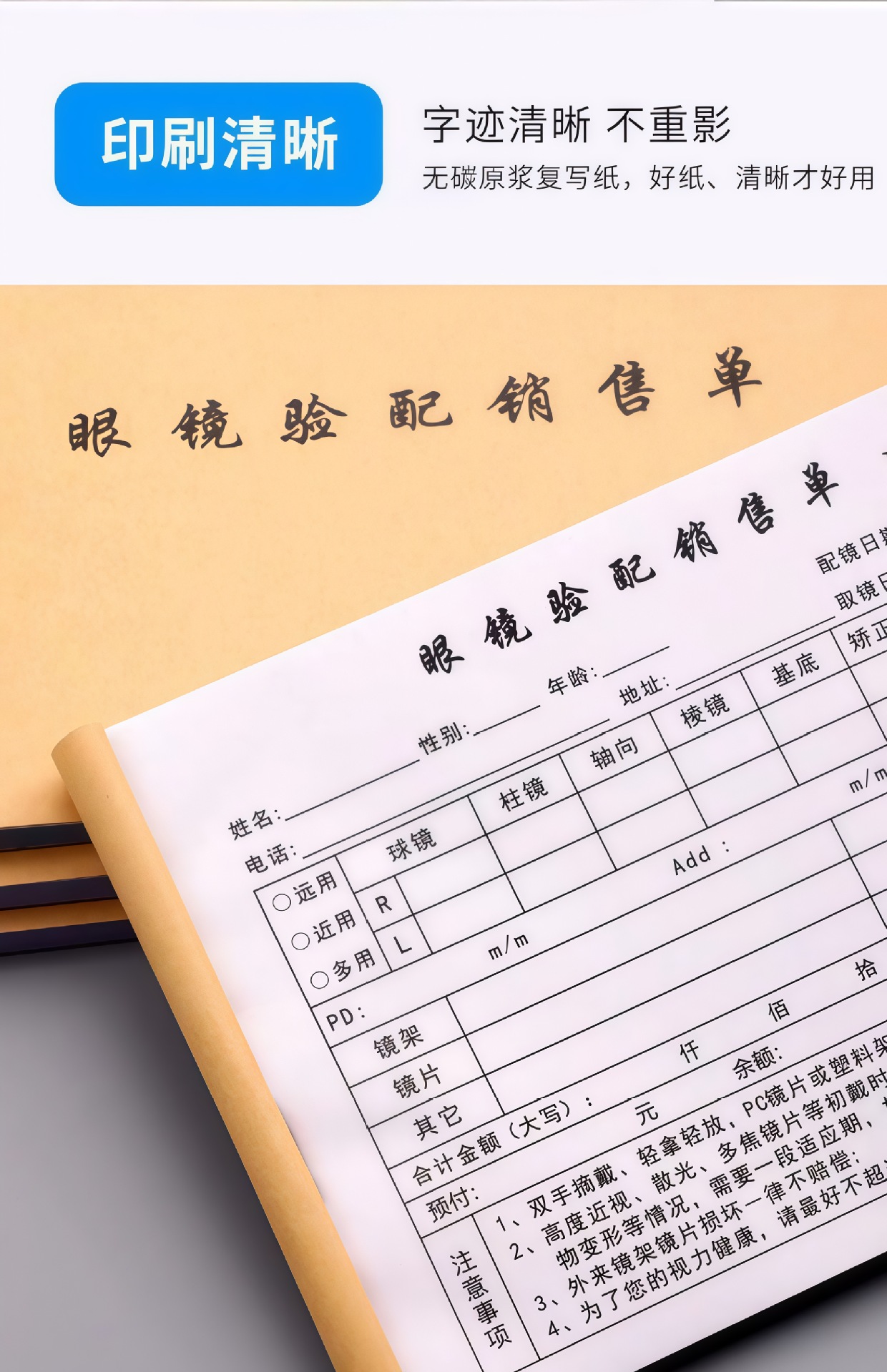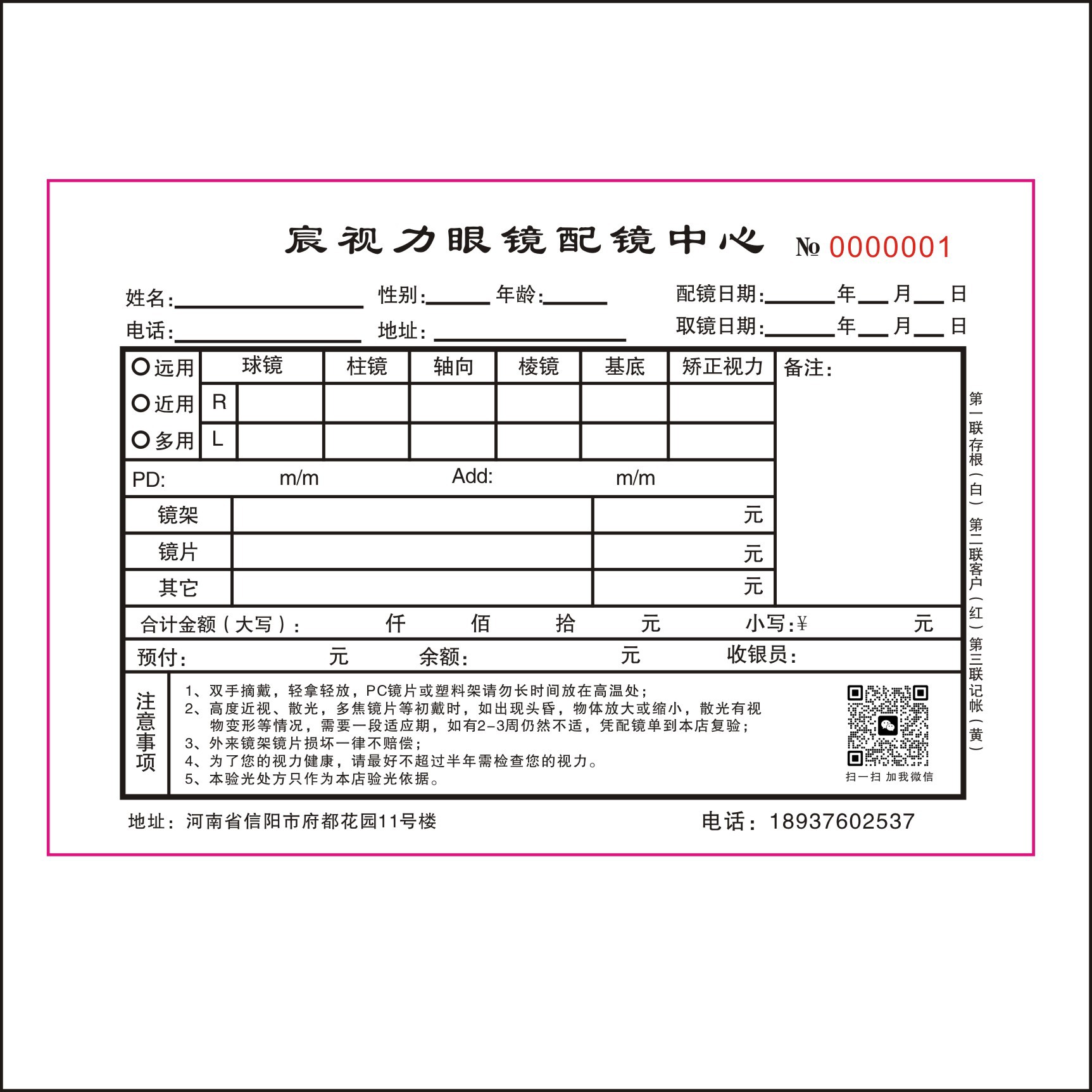 Документ квитанции для оптического магазина, трижды сложенная форма консультации по оптике