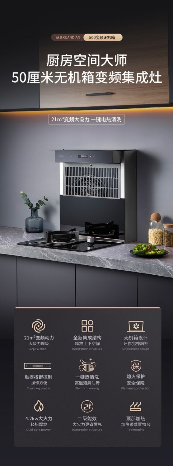 ![]() | Variable frequency hood + liquefied gas stove | ¥2263.75 / ≈ 27 350 ₽ | 1000 | 6134395095237 |
