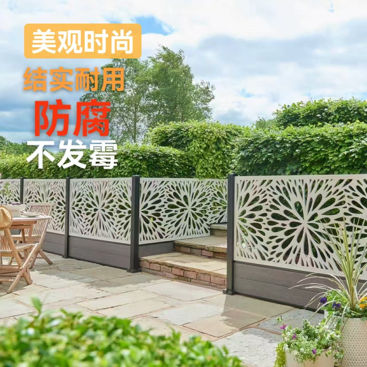 Уличный экран из пластика и дерева, резной полый забор, резной экран, деревянный пластиковый забор, внутренний ограждающий барьер от производителя