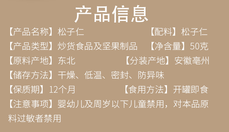 ![]() | Takimidou pine nuts 50g/can | 2шт: ¥12.00, 1000шт: ¥11.70, 10000шт: ¥11.50 | 22806 | 6171259939008 |
