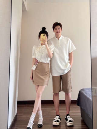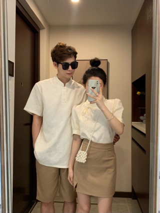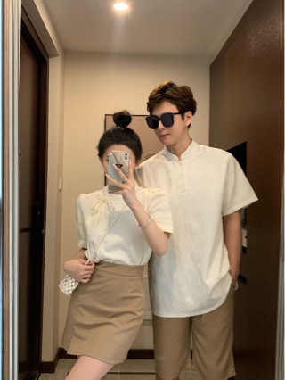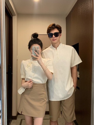 Новые китайские стильные наряды для пар на лето, уникальные короткие футболки для мужчин и женщин, двухпредметное платье и топ во французском стиле, модные в Instagram