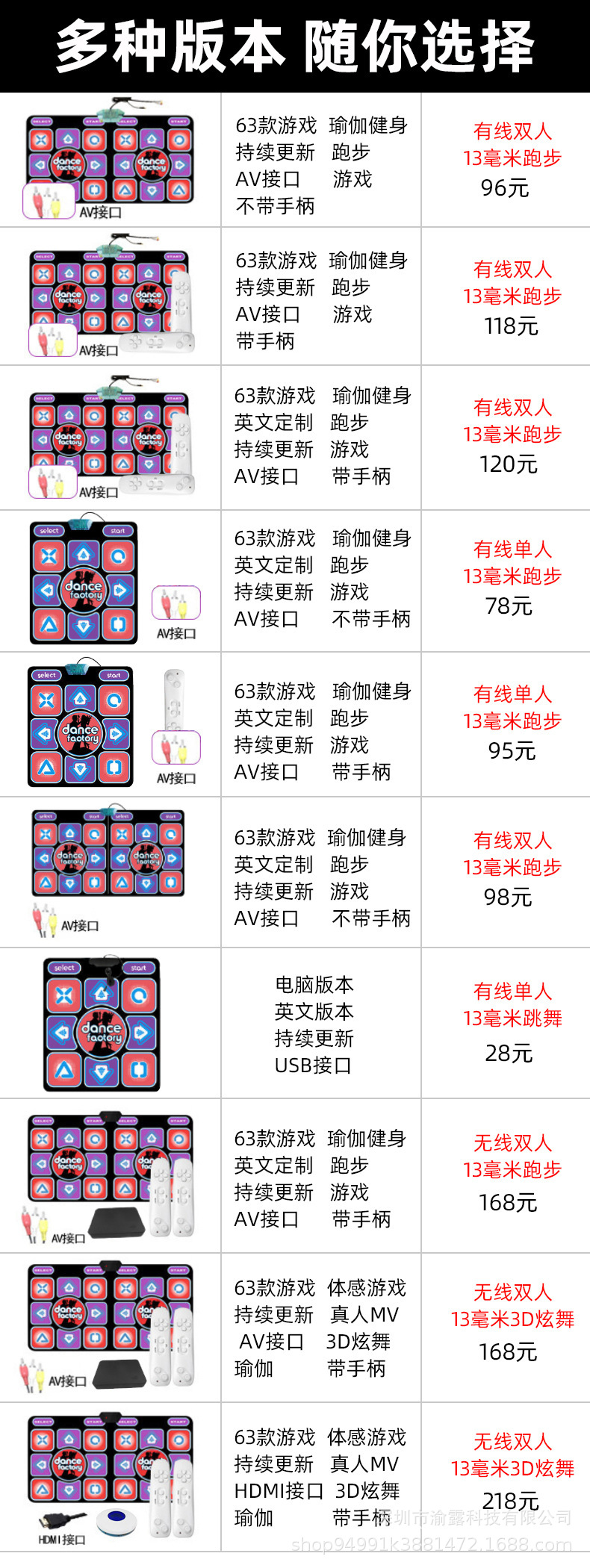 📦 | Dual hdmi wireless dance mat with massage pad, 13mm (real person mv dance + motion sensing games + controller + upgradable) | ¥218.0 / ≈ 2 629 ₽ | 9988 | 6139096731292 |