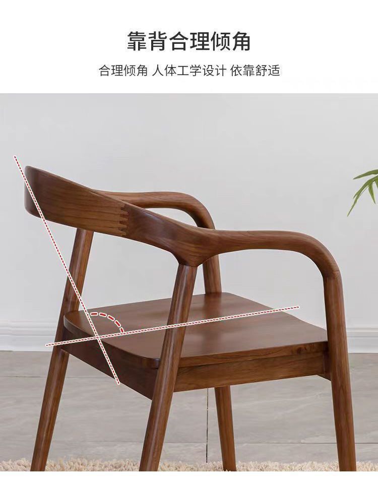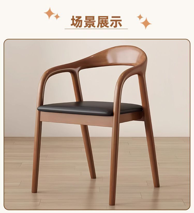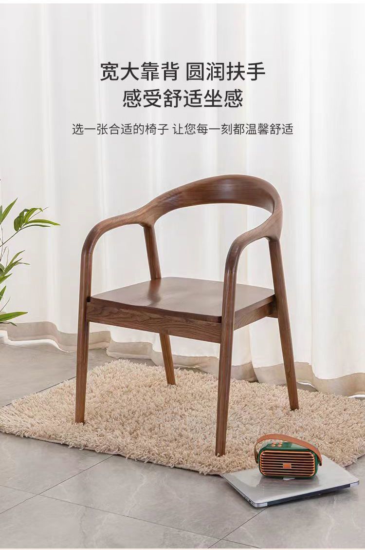 Нордический обеденный стул из массива дерева, стул с спинкой для домашнего использования, комфортный ореховый стул, простой кресло, ретро стул для переговоров