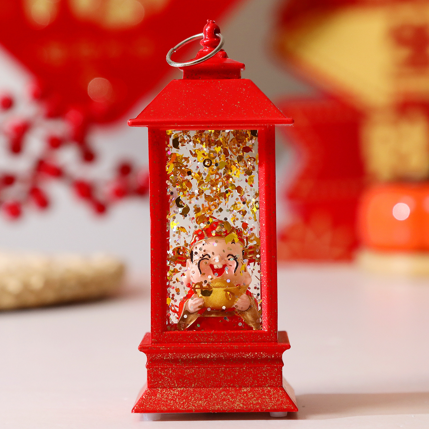 Новогодняя лампа ветра с богом богатства, маленькая масляная лампа с водой, подарок, украшение для стола, светящаяся ночная лампа, креативное украшение