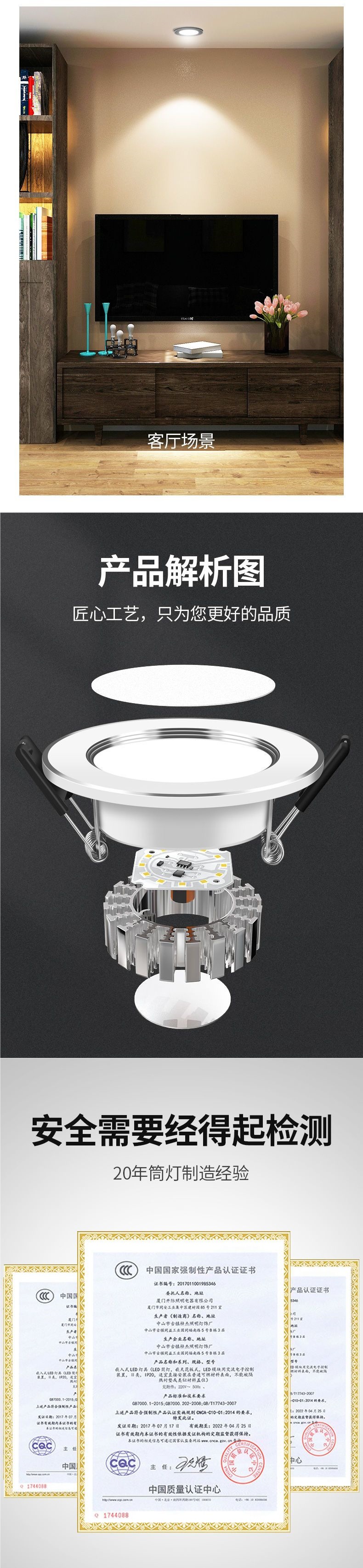 Светильник для потолка, встроенный, три цвета, 7.5 см, для гостиной, простой дизайн