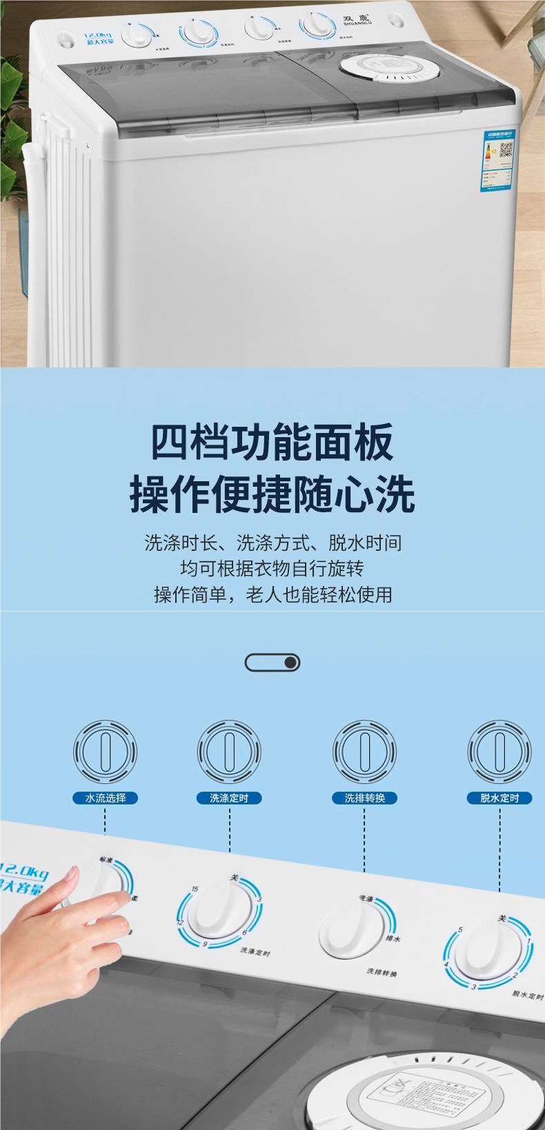 Полуавтоматическая стиральная машина с большой емкостью 8.8/30 кг, старая модель с двойным цилиндром