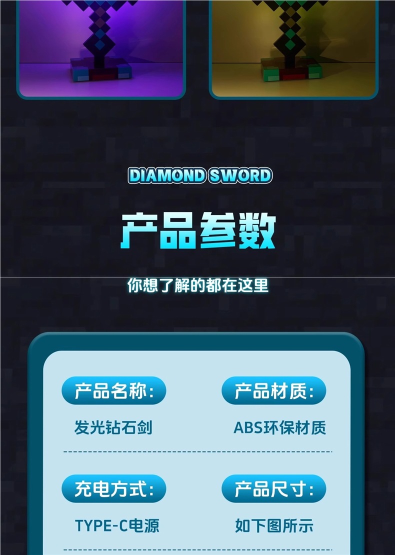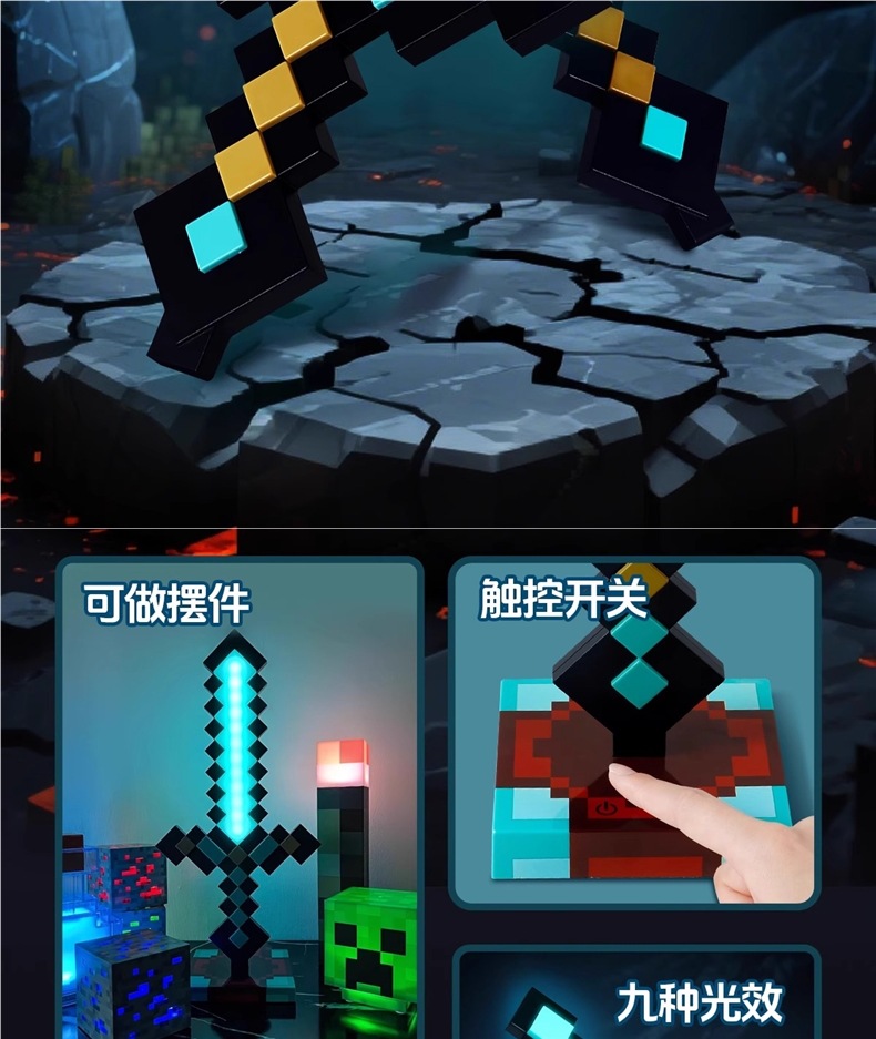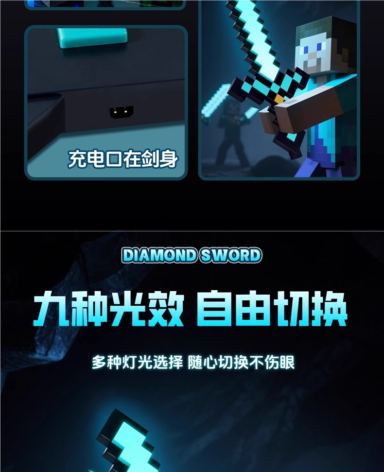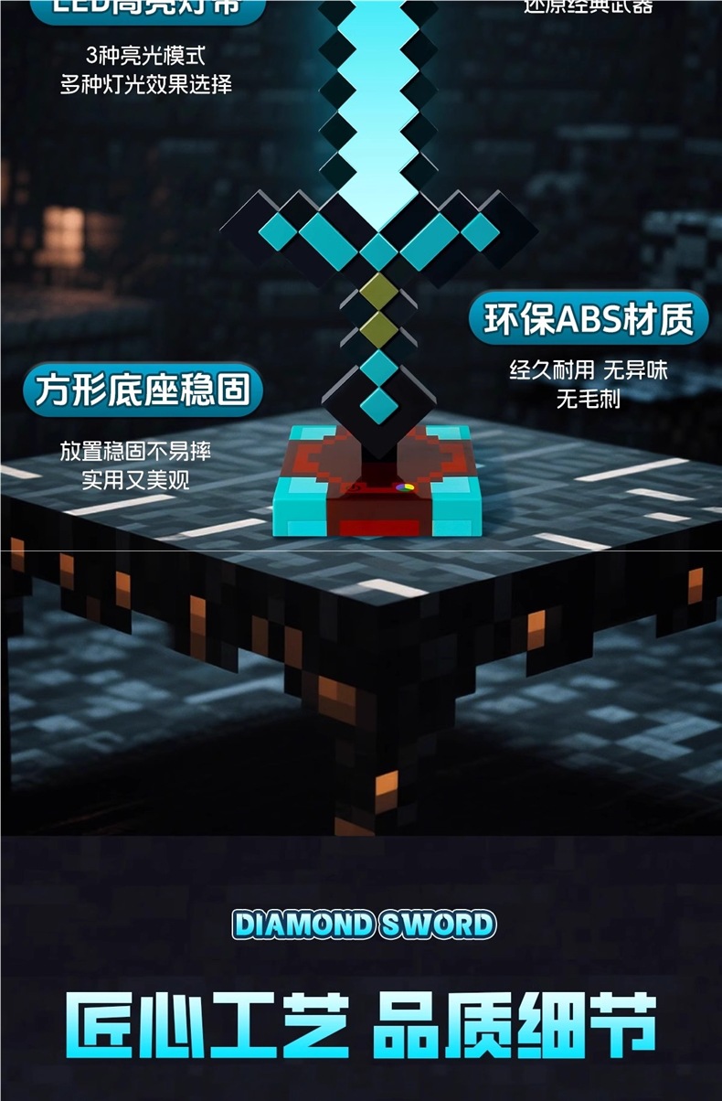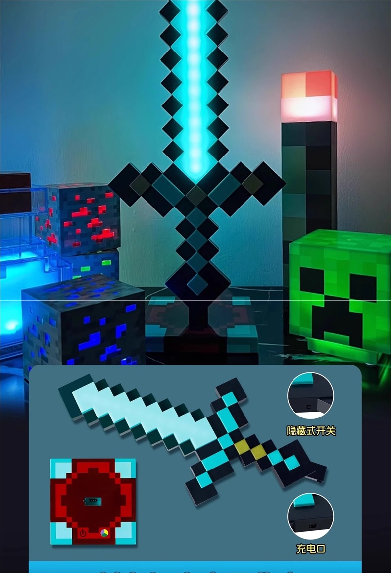 Игрушка-меч алмаза Minecraft, светящийся универсальный меч, меч-кирка из Nether Alloy, пиксельное оружие с трансформацией