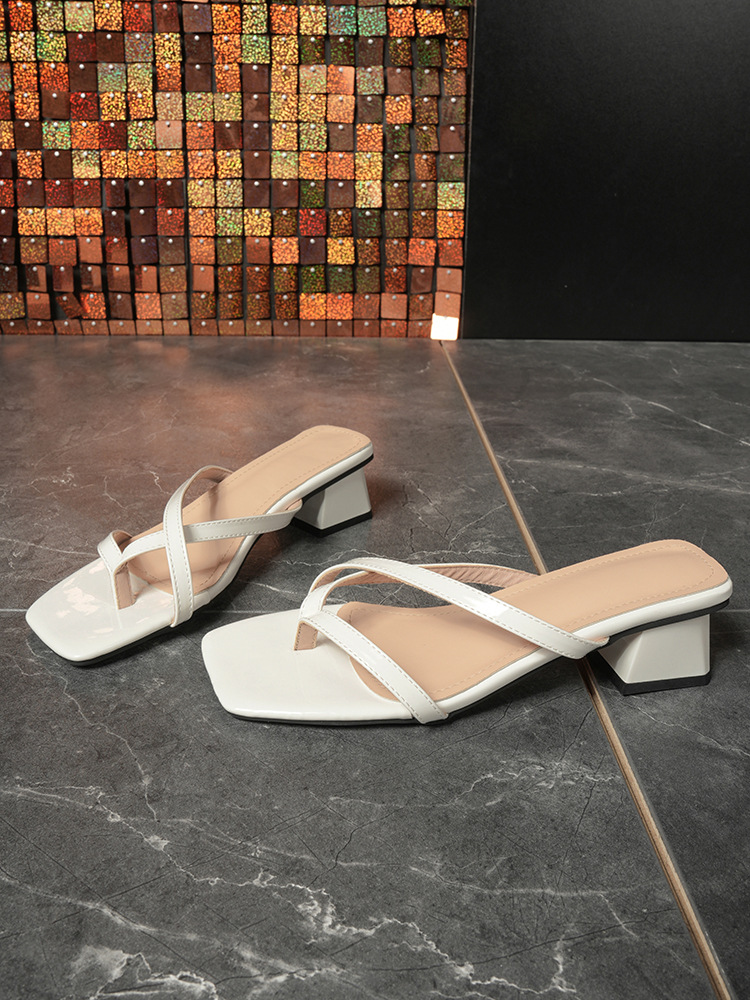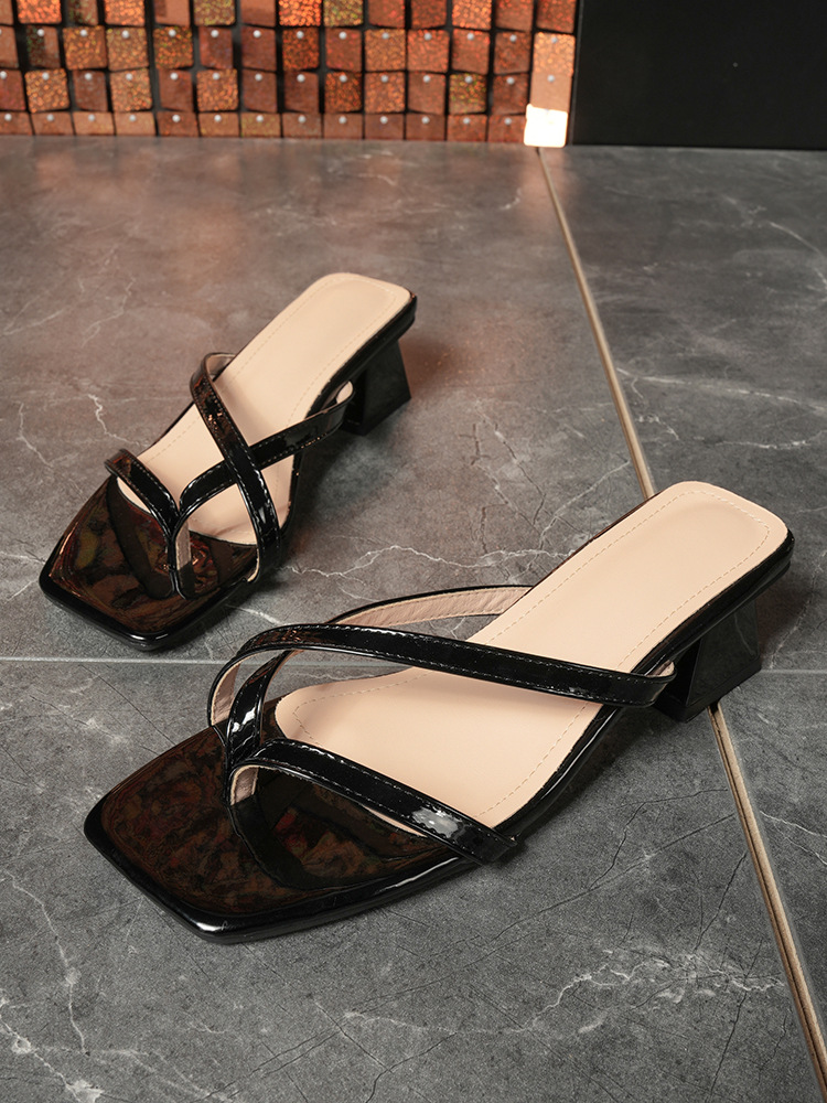 Кросс-бордерные обувь для женщин на толстом каблуке, шлепанцы, новые квадратные носки, удобные сандалии 2025