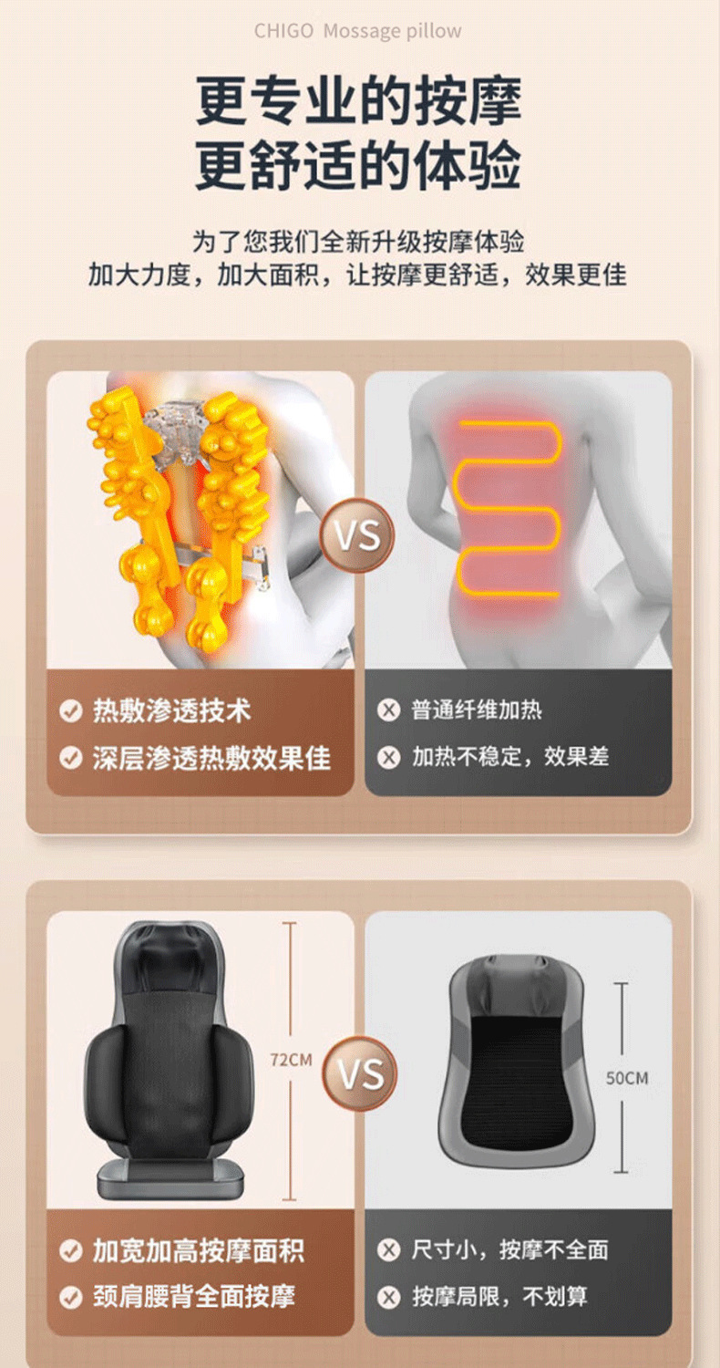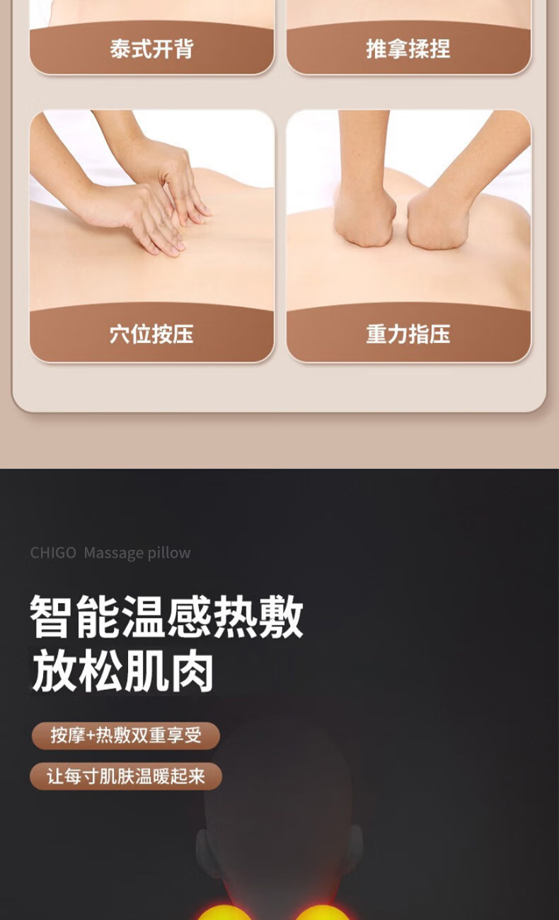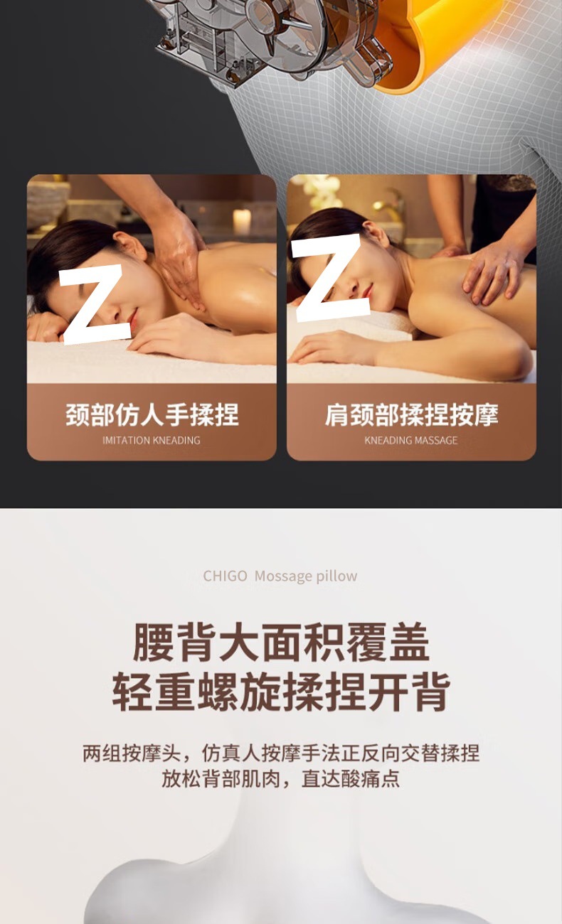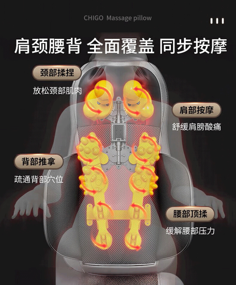 Массажная подушка, многофункциональная, портативная, домашний массажер с горячим компрессом, для шеи и поясницы