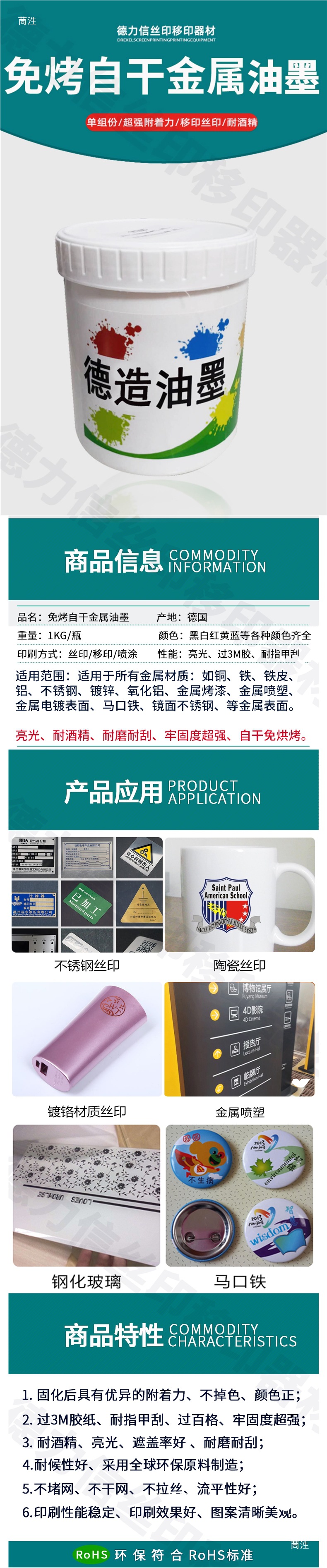 Металлические чернила без запекания, однокомпонентные чернила для тиснения на жестяной таре, прочная поверхность для алюминия и нержавеющей стали