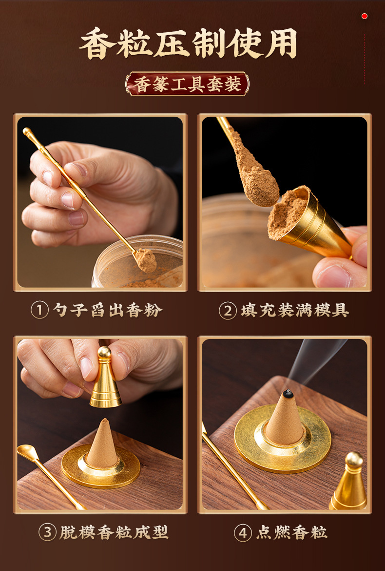 Набор инструментов для начинающих из латуни для благовоний, ложка для благовоний, палочки для благовоний, пресс для золы, форма для благовоний, конусные благовония, башня для благовоний