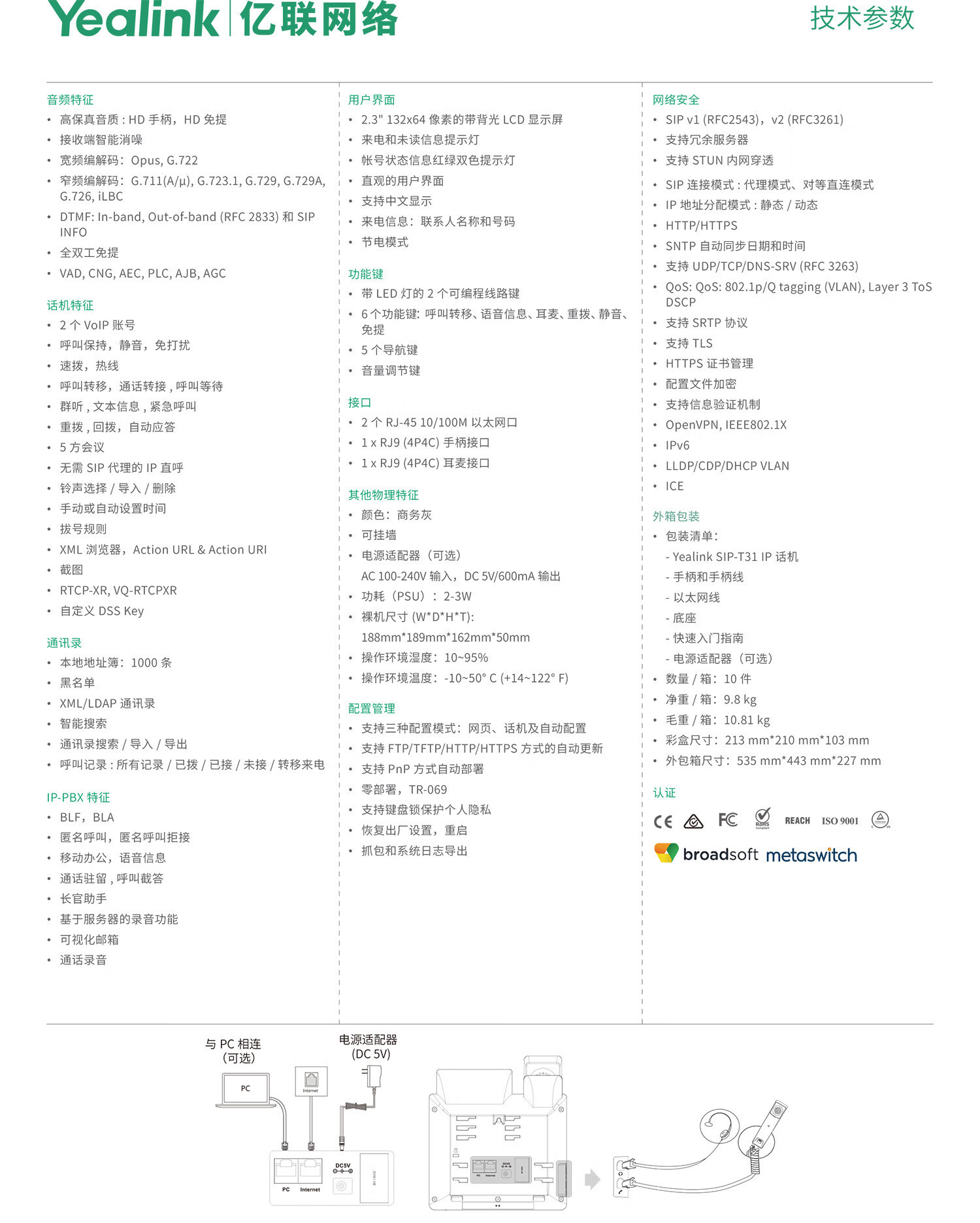 Yealink Sip-T31 Voip сетевой телефон Sip телефон для бизнеса офис 100м