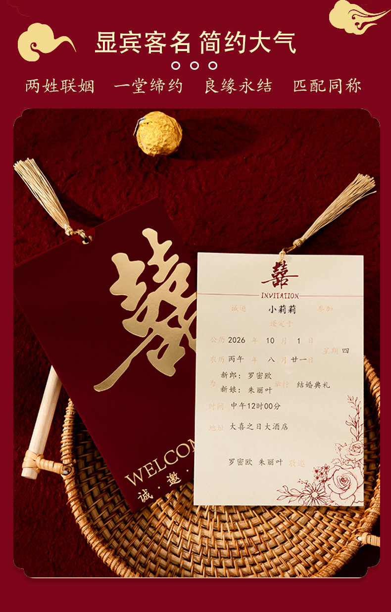 Приглашение на свадьбу 2025 Новое китайское приглашение, нишевое креативное бумажное приглашение на банкет