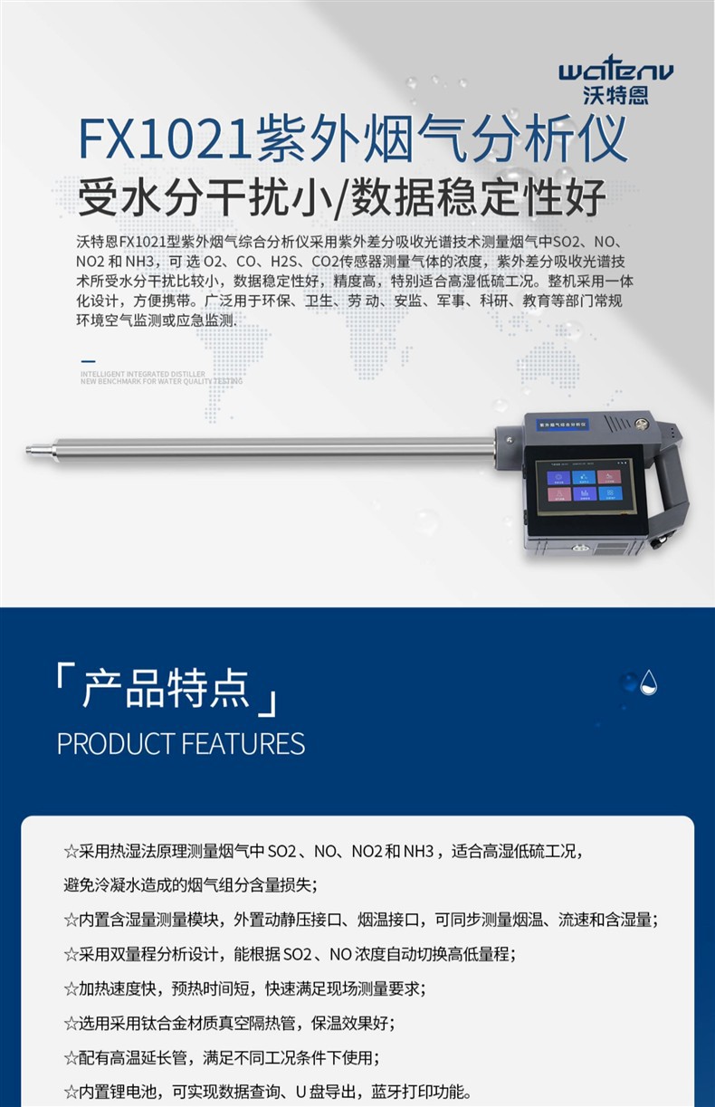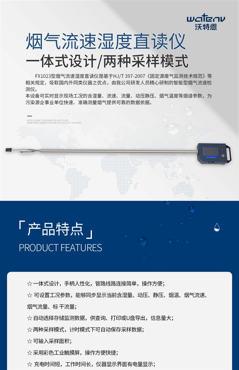 Комплексный анализатор дымовых газов Wotain UV Дым Пыль Комплексный тестер дымовых газов Прямое измерение скорости потока и влажности