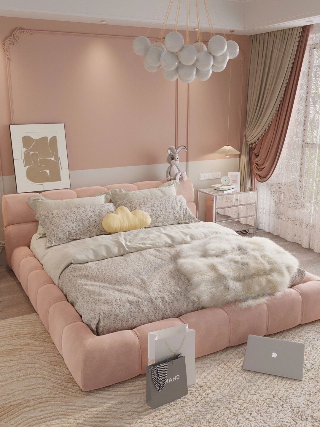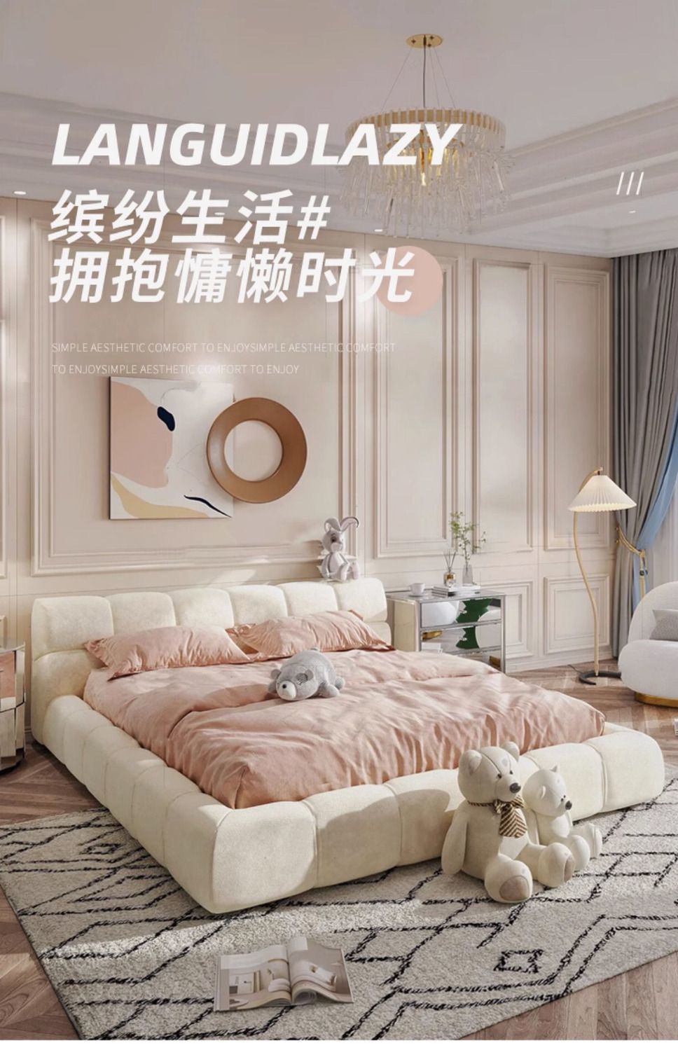 Современная минималистская кровать в стиле Инстаграм, облако для спальни, свадебная кровать для девочек, французская кремовая кровать для дома