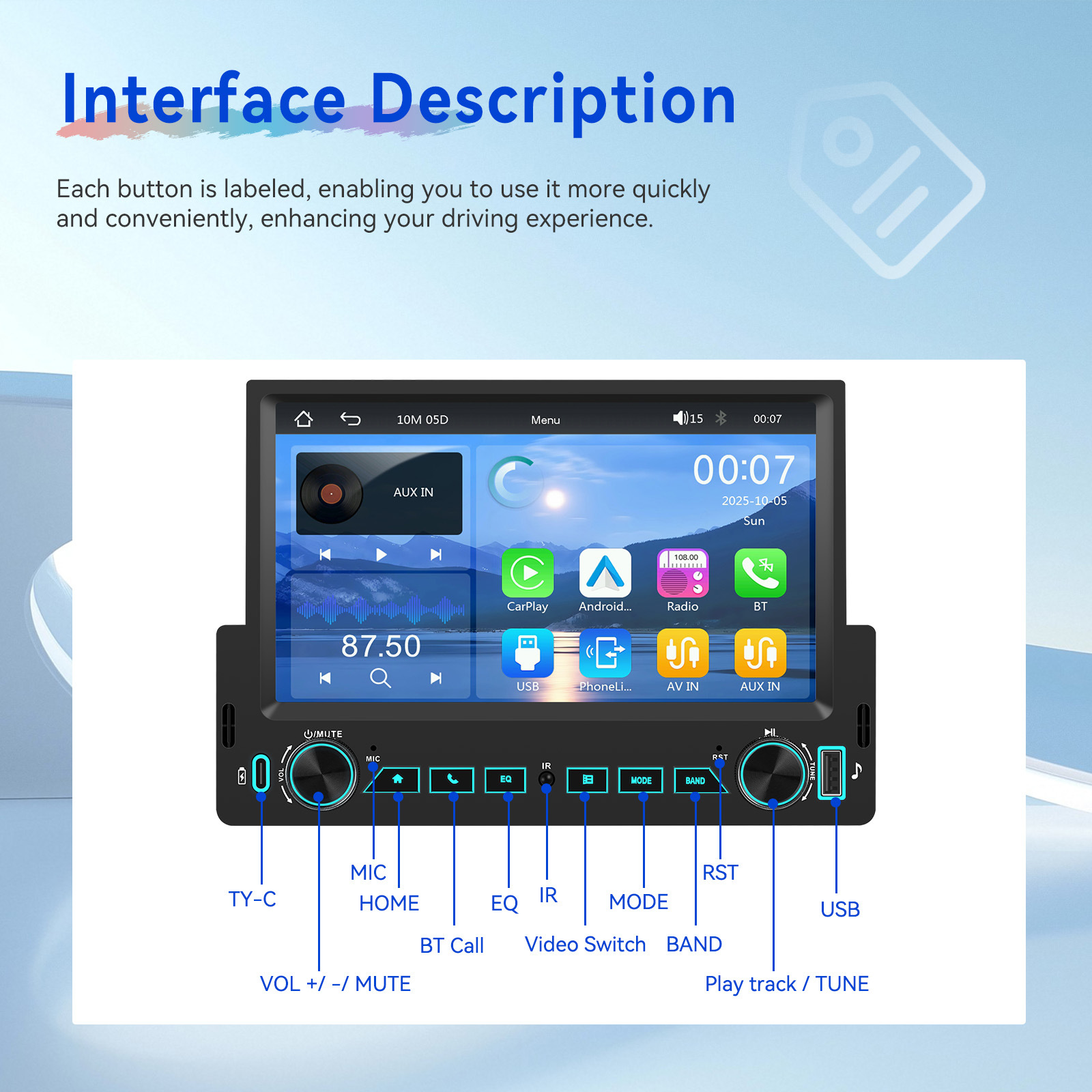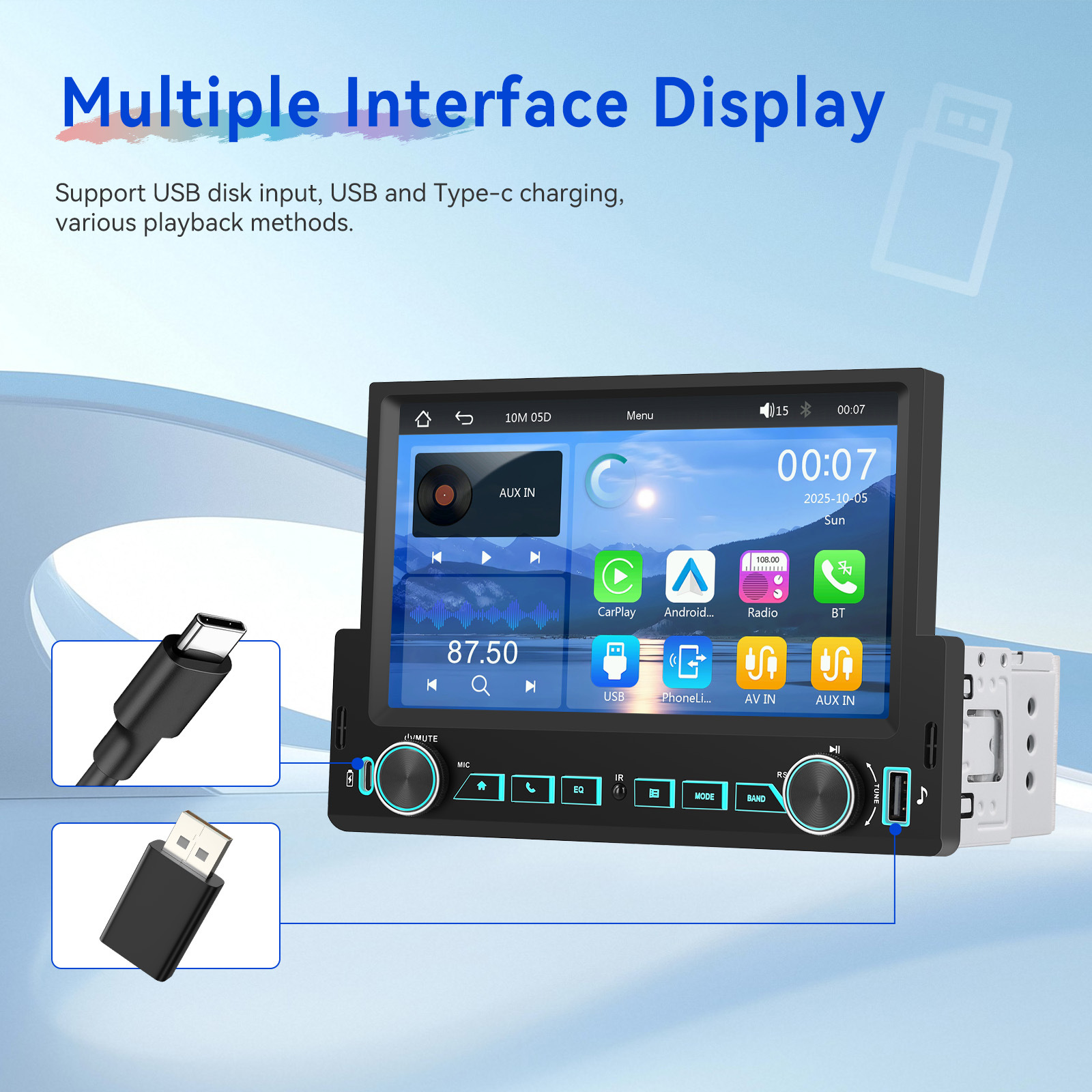 7-дюймовый однокамерный нейтральный беспроводной Carplay Bluetooth MP5 плеер с двойным USB и центральным управлением